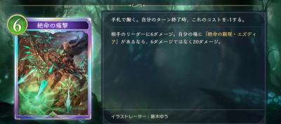 現時点だとトークンスペルがターン経過でコストが下がる顔面6点っスね…エズディアがいる時の副次効果がきになルと申します