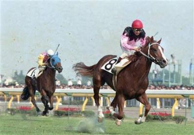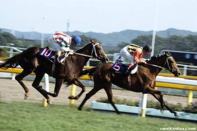 「ヨーイチさんの八大競走童貞をもらった」「ヨーイチさんをはじめとするイケメントレーナーのギラギラした視線を浴びながら菊花賞(意味深)をゲットした」とか妙にいかがわしい戦績自慢をして、同じ母父ソロナウェーで選手生活終盤の宿敵(ハマノパレード)に、ハリセンでしばかれて退場するまでが持ちネタのニホンピロムーテー