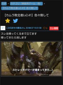【カムラ敗北者Lv2.51】色々あって|あにまん掲示板ライダーキックしてますbbs.animanch.com - 195二次元好きの匿名さん25/08/29(金) 00:22:55