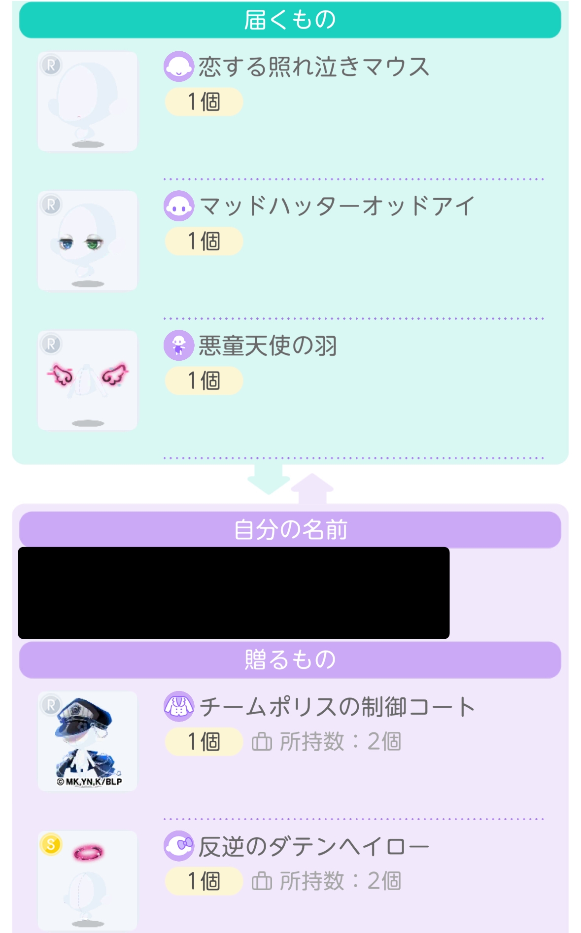 自分もコンプしたから在庫整理も兼ねて3つ以上ダブったアイテム交換に出そうと思ったけどコラボ同士じゃない場合のレートがよくわかんないっぴ!コートあたりがめちゃくちゃ高いのはぼんやりわかるけど乗せぬいとぬい付き衣装ってどんな感じなんだろ