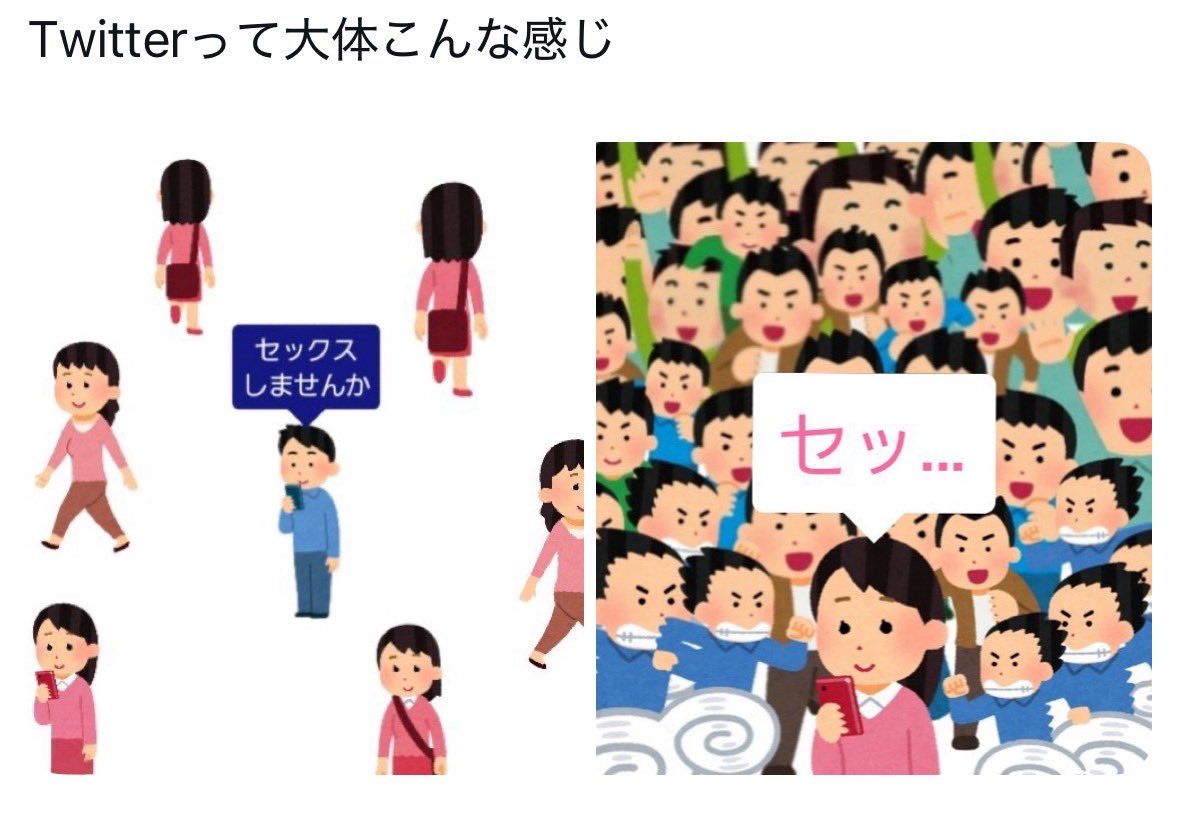 セ.ックスしたいならxの中身おっさんの垢に群がるより身近にいる女に好かれる努力したほうがよっぽど建設的なのはそう