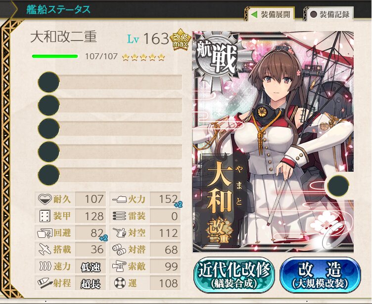 かぼちゃ改修で適当な艦でも5隻フルに使ったら運上がるって去年知ってたら矢矧育てきれたのにな