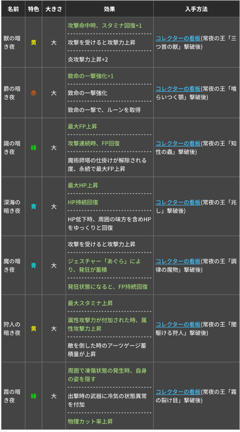 全体を通して防御系の遺物の良さがわかったな、魔力カット炎カット発狂耐性などなど
