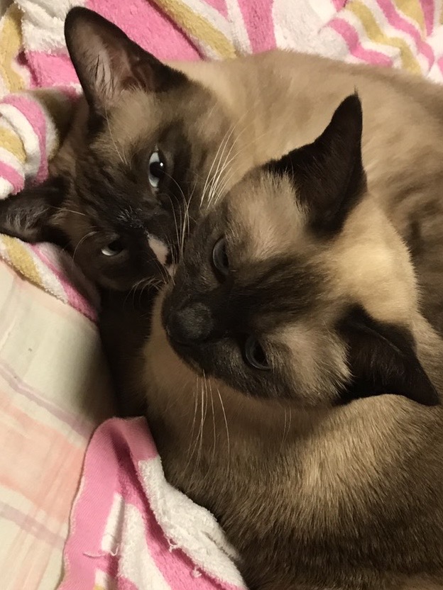 飯報告のたびに膝の上でオネコが頭を掴まれてるんだよね 可愛くない?