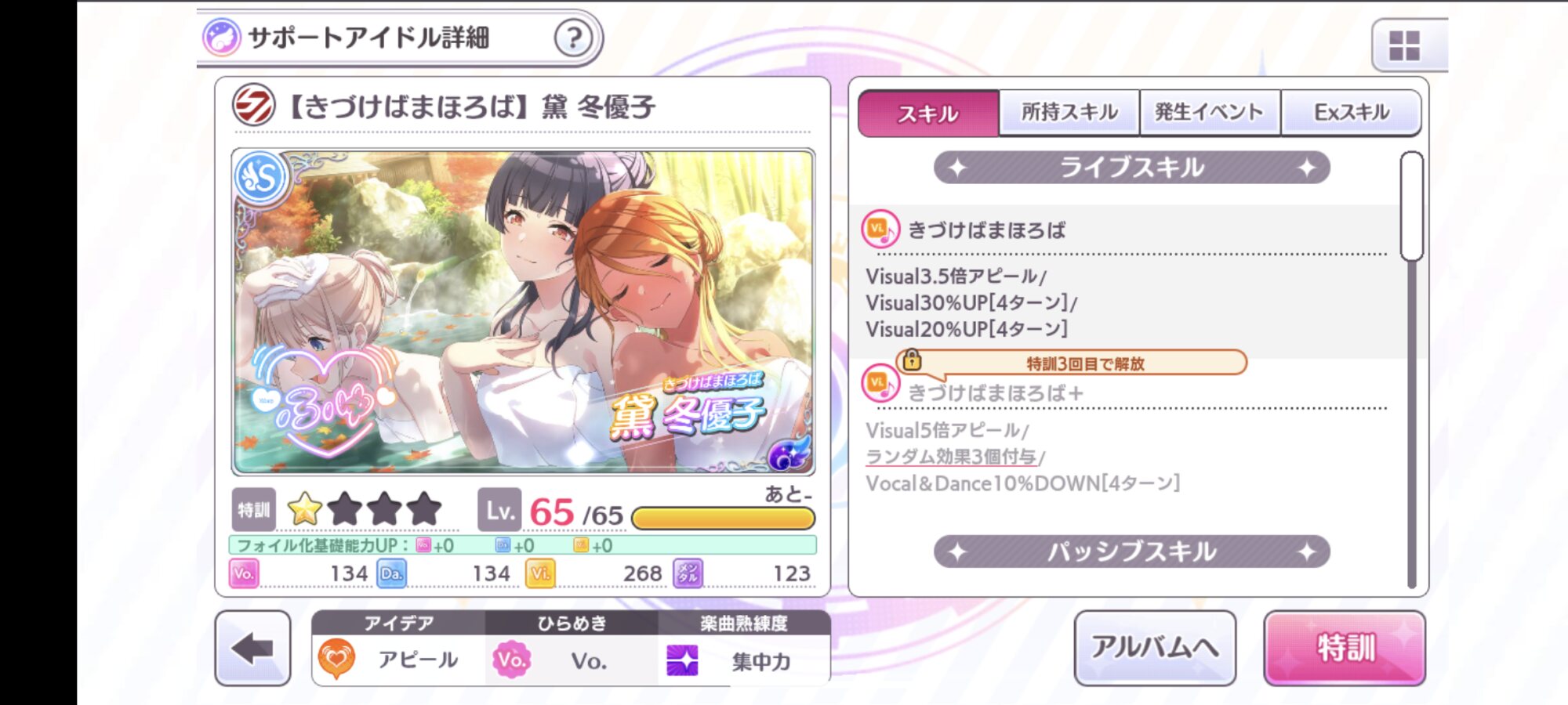 説明流し見しちゃったせいでアビリティとかブロックとか何のことか分かんなくて結局ただビジュ盛って冬優子ちゃんのスキルで殴ってただけ...