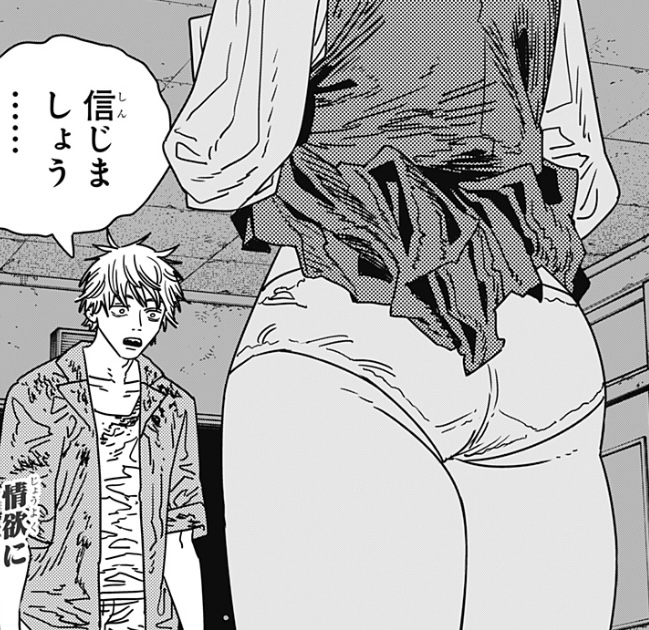 見せたのはお腹なのにそれより下のパンツの方を見てしまうデンジのチンチン脳よ…