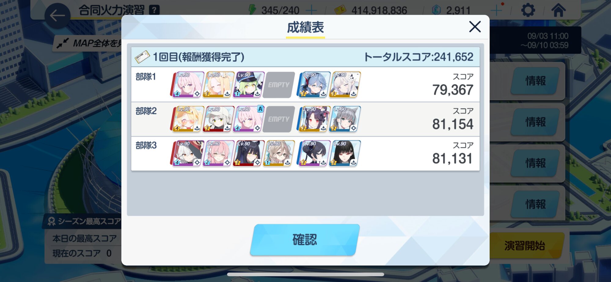水着ミカ×2と水ハナで444出来るから後はスコアを切り詰めるだけになりそう