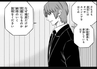 ・二宮は「非戦闘員は人を撃てなくても役に立つから遠征に参加している。よって鳩原も人を撃てなくても遠征の役に立つ十分な力があると証明すれば参加できるはず」と主張したのであり、非戦闘員や鳩原に失礼なことは言っていない