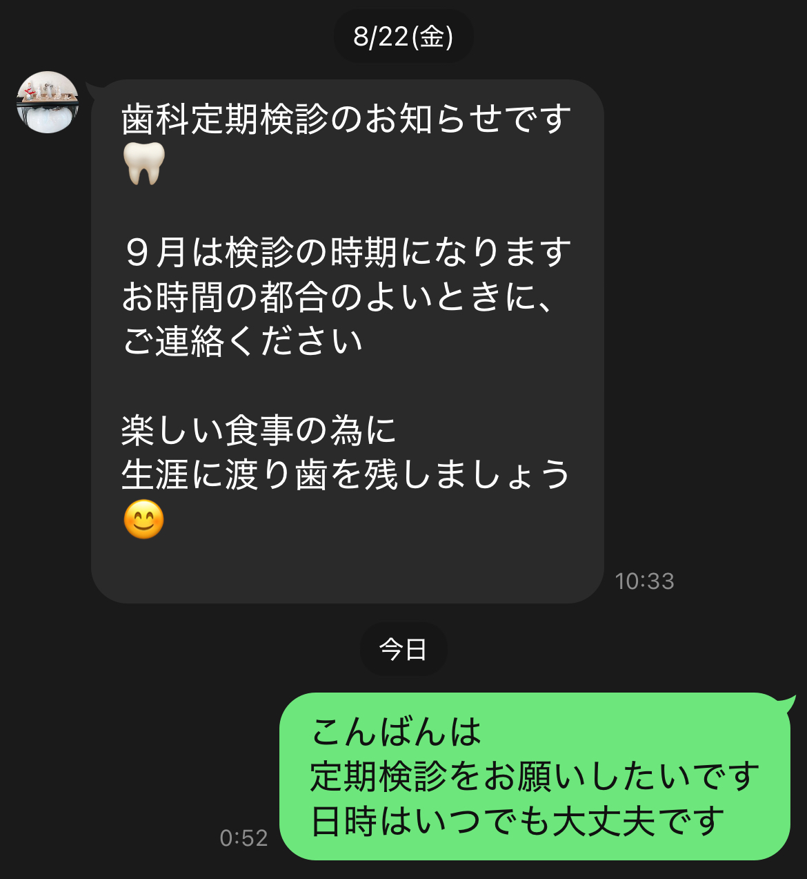 分かりづらいけどワシがメッセージ送ったのは今日(9/4)なんだ
