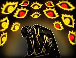 同期前イラストの背景に敷き詰められた孔雀の羽のような目たち…神