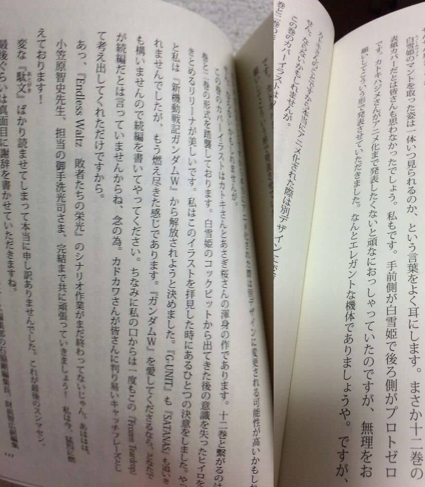 世界観を深める描写や解説がたくさんあるからそれだけでもW好きなら読む価値があると思う。これはewの小説も同じだけど