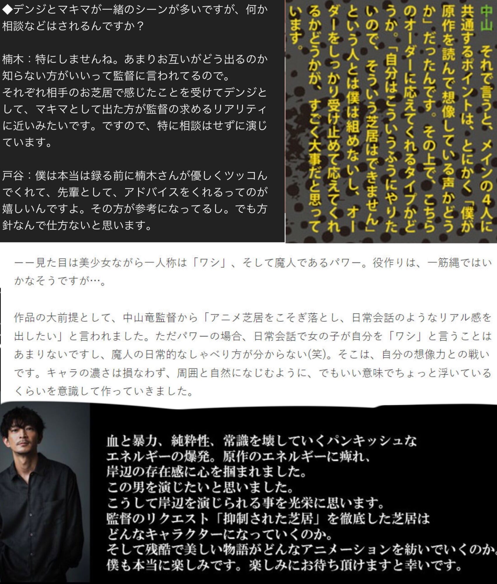 マキマさんが執務室で話すシーンとかのカメラが外や引きになった時の環境音よりセリフが小さくなって音量上げないといけなくなるのは映画的でもない音量バランスのミスだと言っていたんですよ本山先生