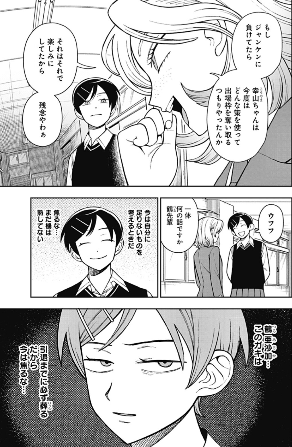 鶴パイ厘ちゃんを煽ってるけど前のモノローグを見るに敵視はしてないしむしろ仲間意識持ってるんだよな