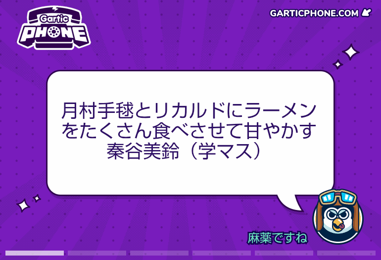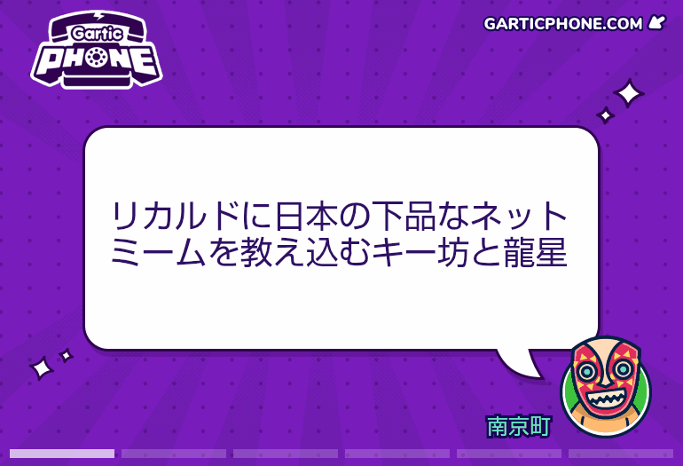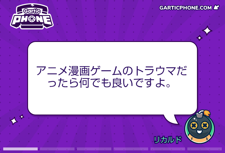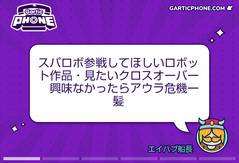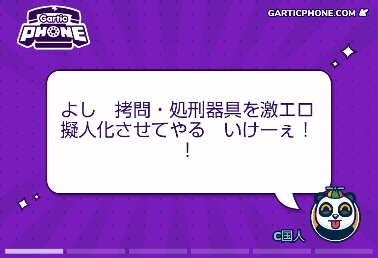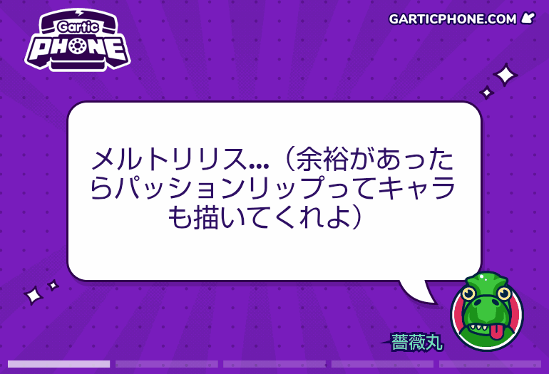 - 11モブ25/09/07(日) 01:41:08伝言ゲームを一緒にプレイしよう!garticphone.comガーティックフォンやるマネモブ集合だー!|あにまん掲示板お題はタフ以外でもなんでもいいですよ知らないお題を調べるのももちろんめちゃくちゃあり まっその分描く時間が減るからバランスはとれてるんだけどね絵が上手か下手かなど気にせず参加しろ…鬼龍のように↓このリ…bbs.animanch.comガーティックフォンやるマネモブ集合だー!part2|あにまん掲示板伝言ゲームを一緒にプレイしよう! https://garticphone.com/ja/?c=03a29d4ed0https://bbs.animanch.com/board/5573822/bbs.animanch.com