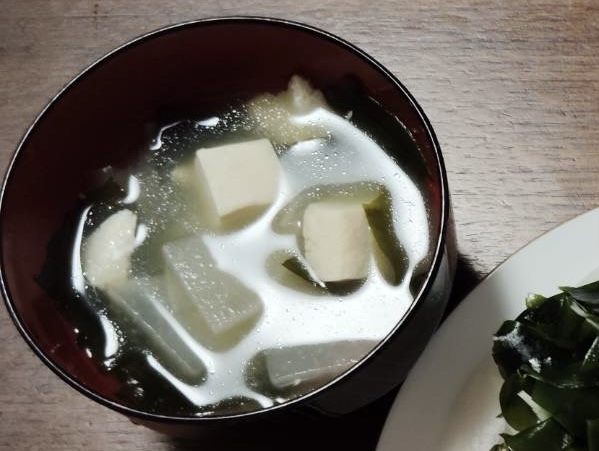 今日の夕食は、豆腐とわかめの味噌汁でした。普通です