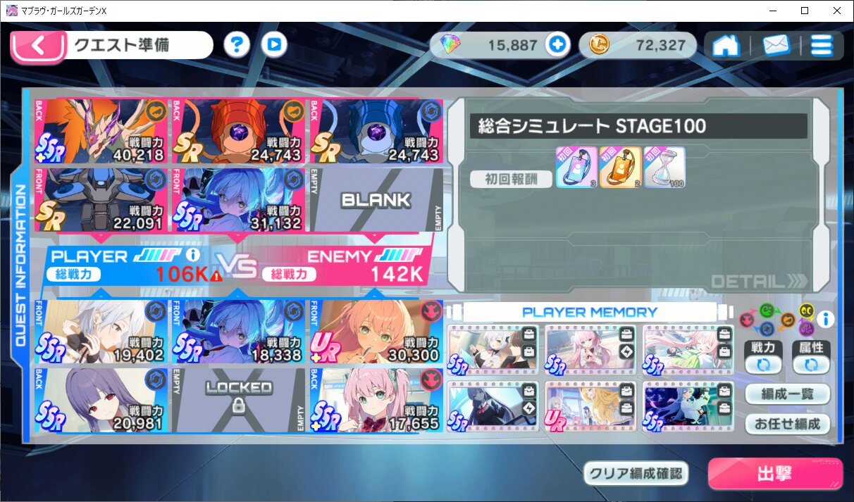 シミュ100で見事に止まったしメイズ60もクリア出来たり出来なかったりで強化がめんどくさくなったんだよね