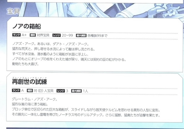 他の武器の原典をギルが持ってるのは型月設定だけどギルガメッシュ叙事詩やメソポタミア神話の洪水神話がノアの神話の原典なのは現実的に考えてそうだろうからこれに関してはギルが原典主張するのは妥当じゃね?