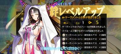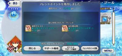 絆石90個+αと絆礼装4枚増えたからおしまい!ぶっ通しでやってたから疲れた!寝る!