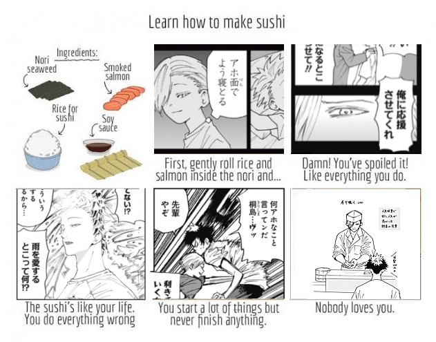 ちなみにこの寿司の作り方の元ネタはスペイン語らしいスペイン…桐島先生はまだスペイン行ってないね飛高