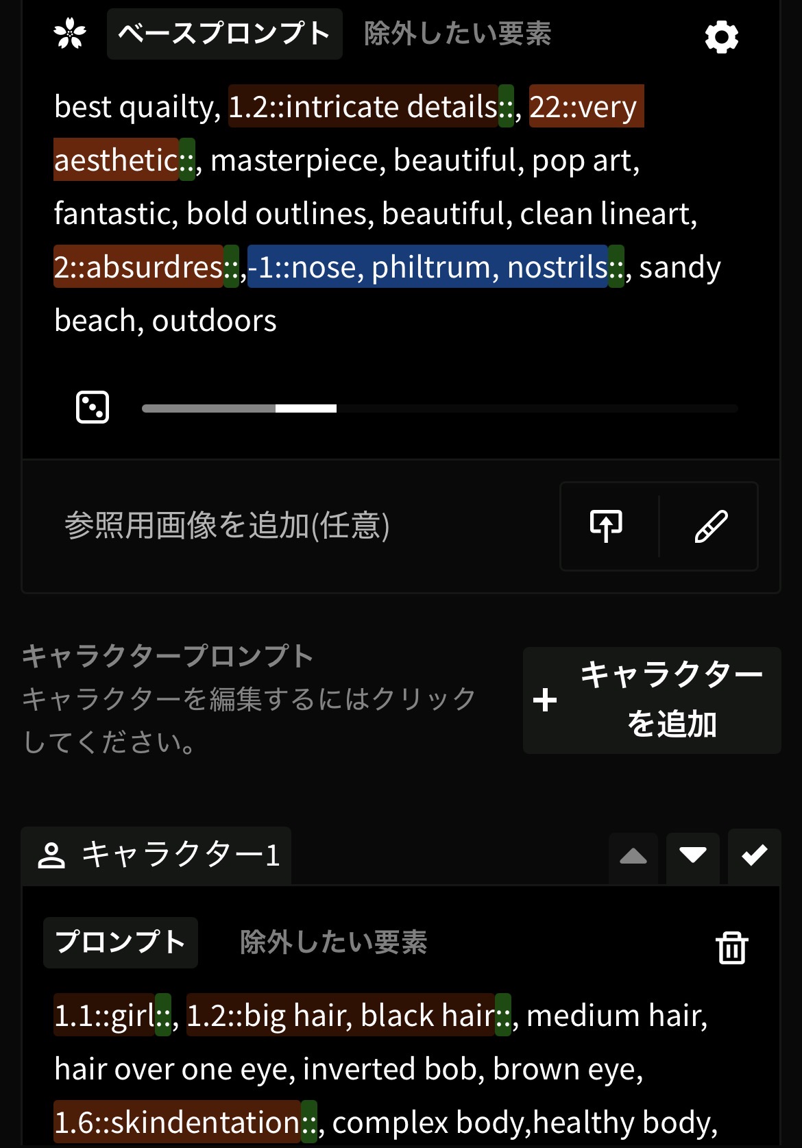 ※添付画像には参考となるキャラの画像や現状の出力結果を設定してください