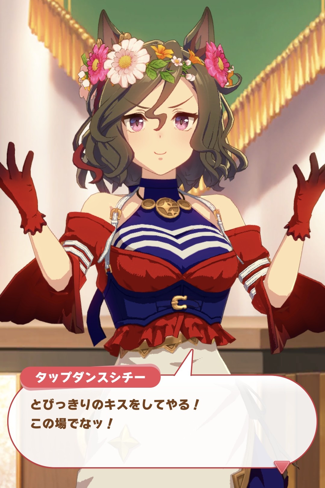 ヒーローとして皆を救うべく、バクシンやブライト、ウインディにブライアン…ヒシアマ姐さんにボノまで甘いキスをお見舞いするビコー…?そして最後には相棒の唇に…!(シナリオで関わる子が多ければ多い程節操が無くなってしまう!)