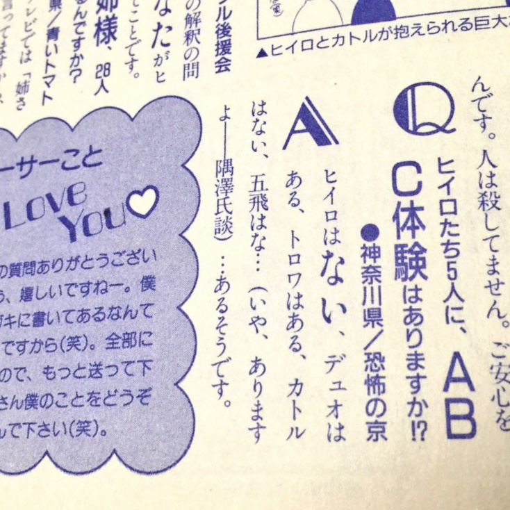 種は私服のダサさが話題になるけど昔の雑誌のピンナップの状況自体は仲良い連中が仲良くはしゃいでるのが多いから私服以外はそんなにトンチキでもなくてその点でWには敵わないんだな