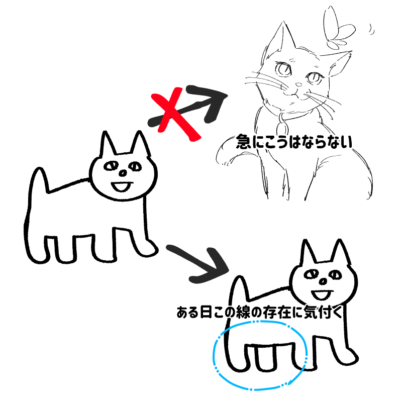 絵に限らず何事も日々の練習で少しずつ少しずつ上達していくものなので実感を伴うことは少ない伝タフ