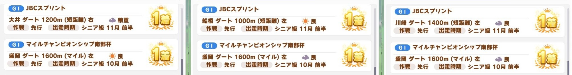 これ脚質の仕様比率で分岐するけどエスポがデフォ先行だから変えないと勝手にJBCスプリント出るんだよね