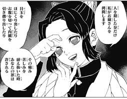 悪夢の中で「笑わせないでくださいね、怨嗟の声など私にとっては子守歌に等しいんですよ?」とか言いそうなしのぶさんだな…
