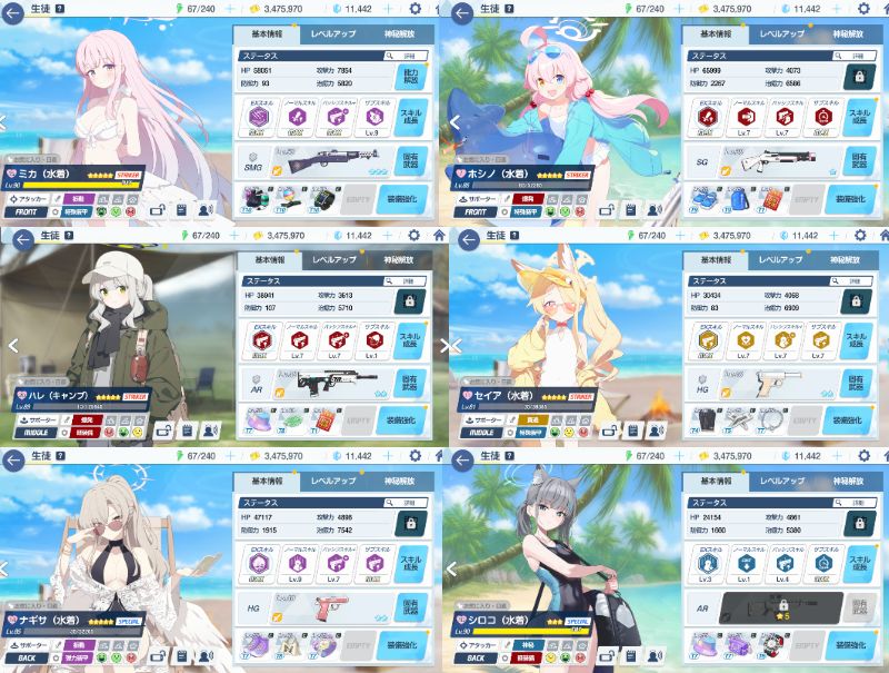 今所持率かなり高いアコ・水セイア・水ナギサ・水シロコ・シュンに