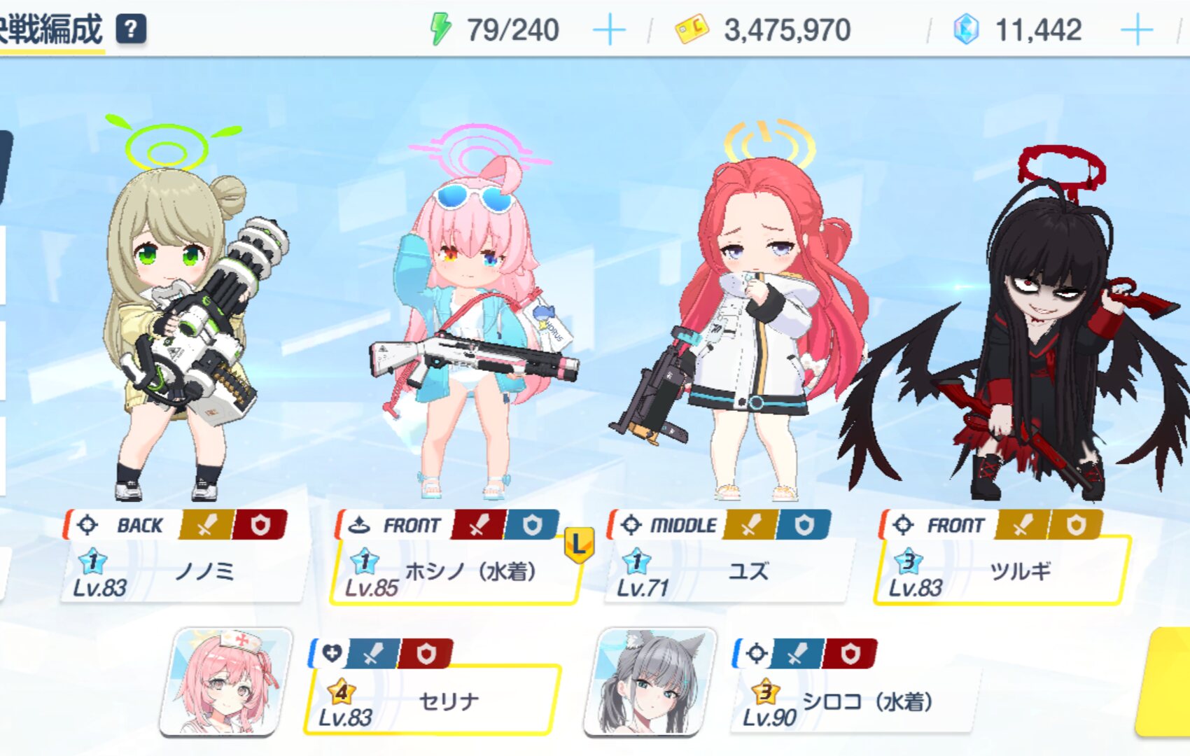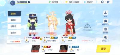 前半突破用の部隊を作りたいならツルギ臨戦ホシノメグあたりを並べて道中でゴリアテ用のアタッカーを一人入れれば問題ないぞ。