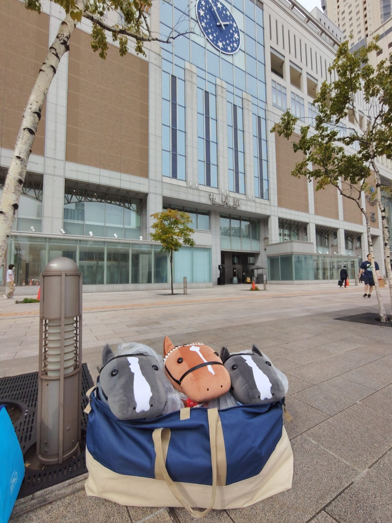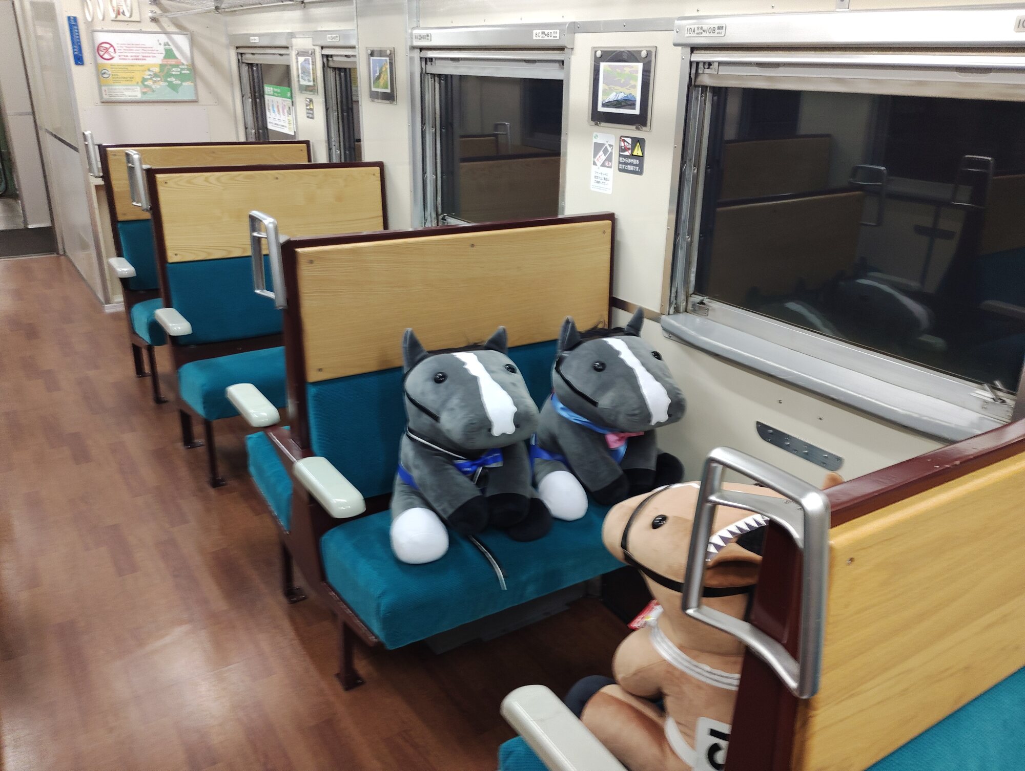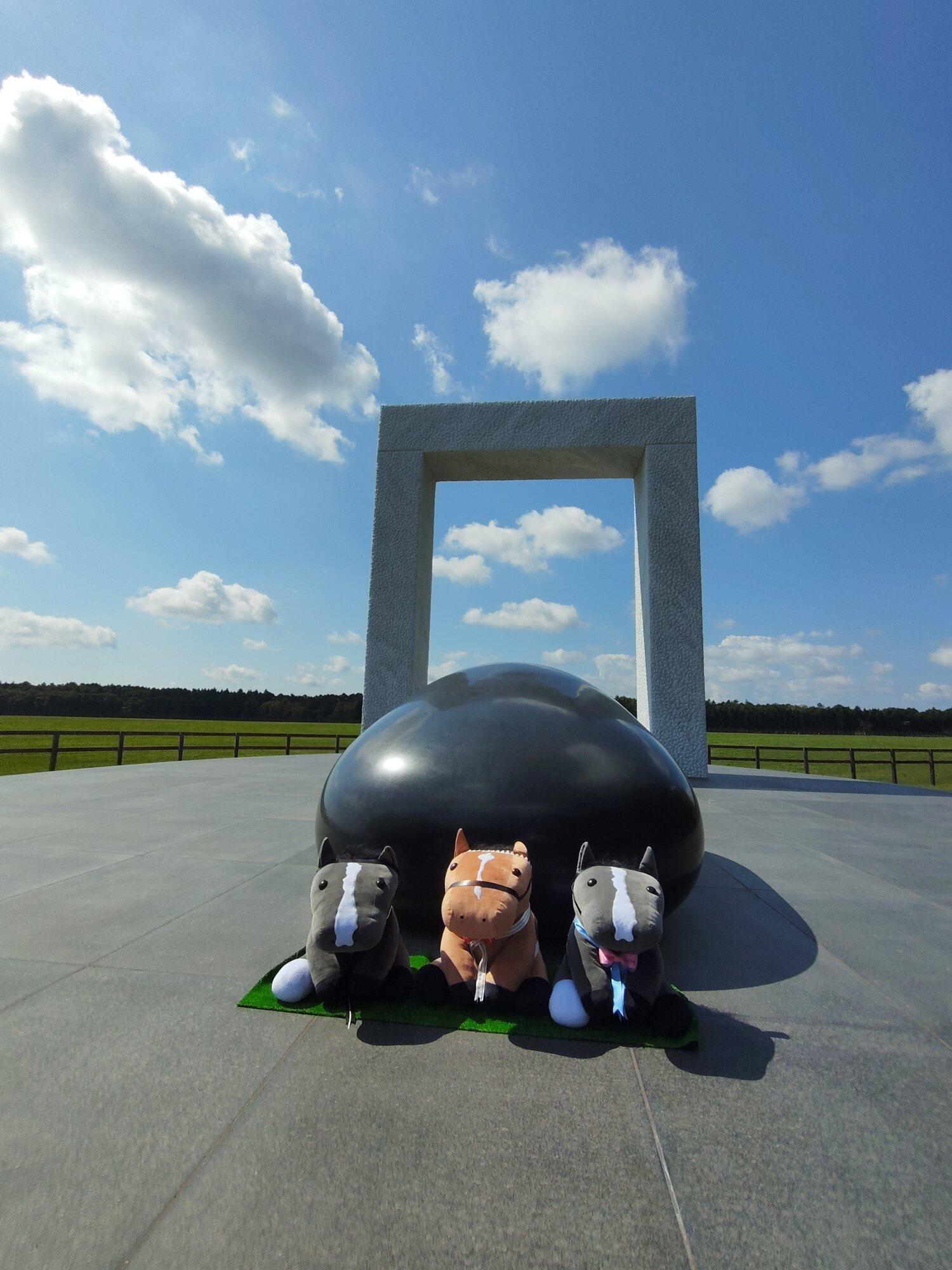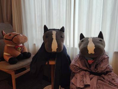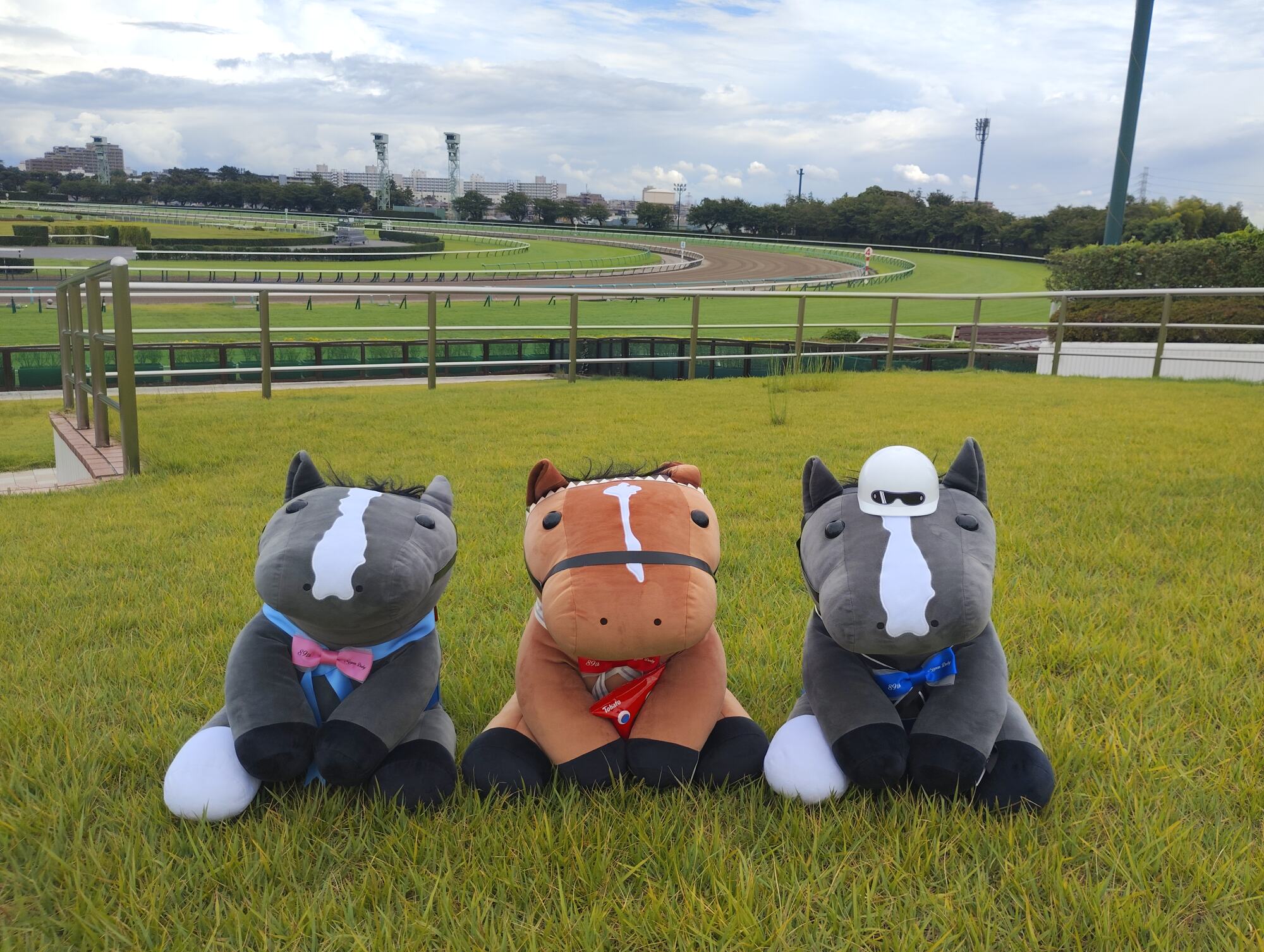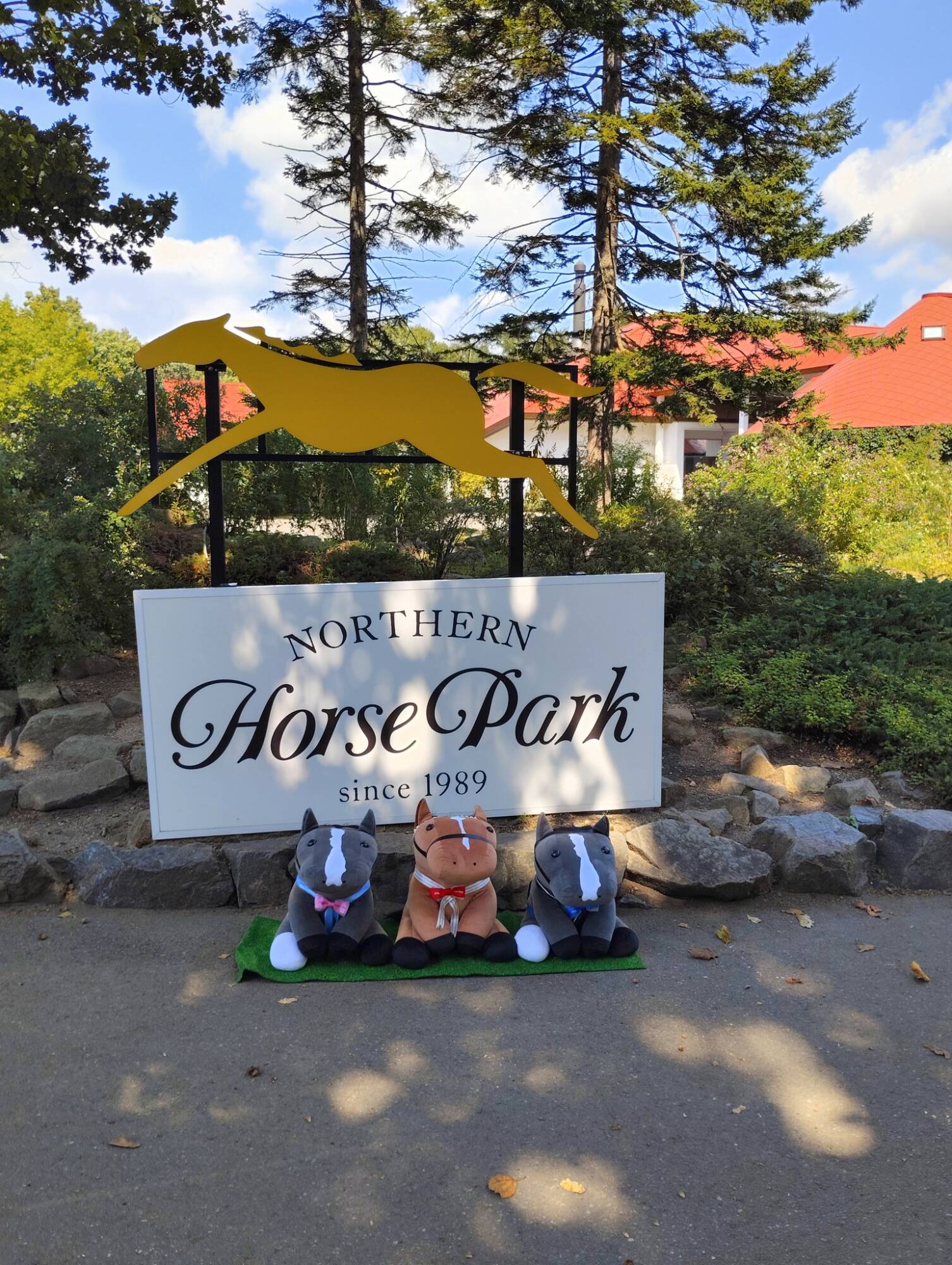 ノーザンホースパークならぬいぐるみ連れは見慣れてそうだけど、さすがにでかもっち3頭出しははじめてだろうな…