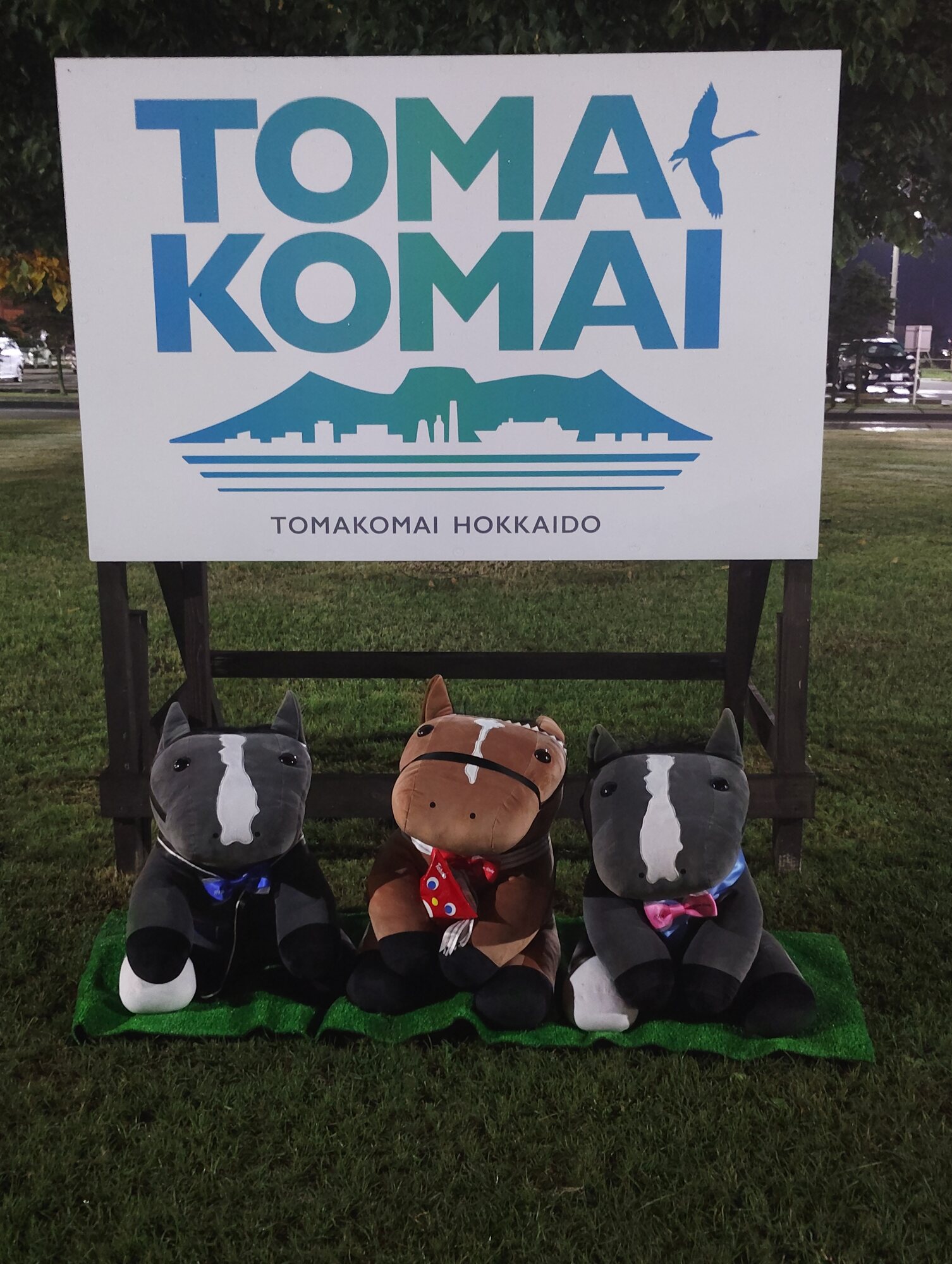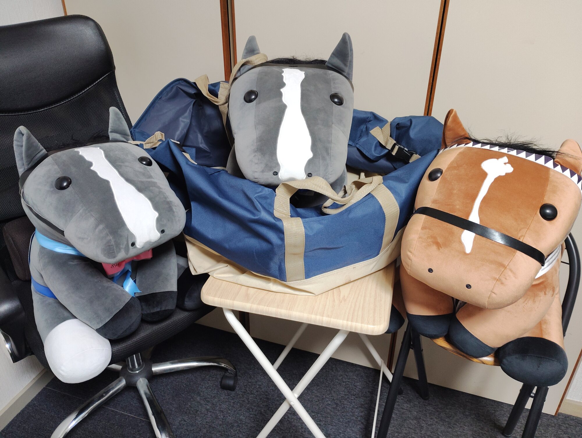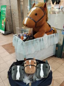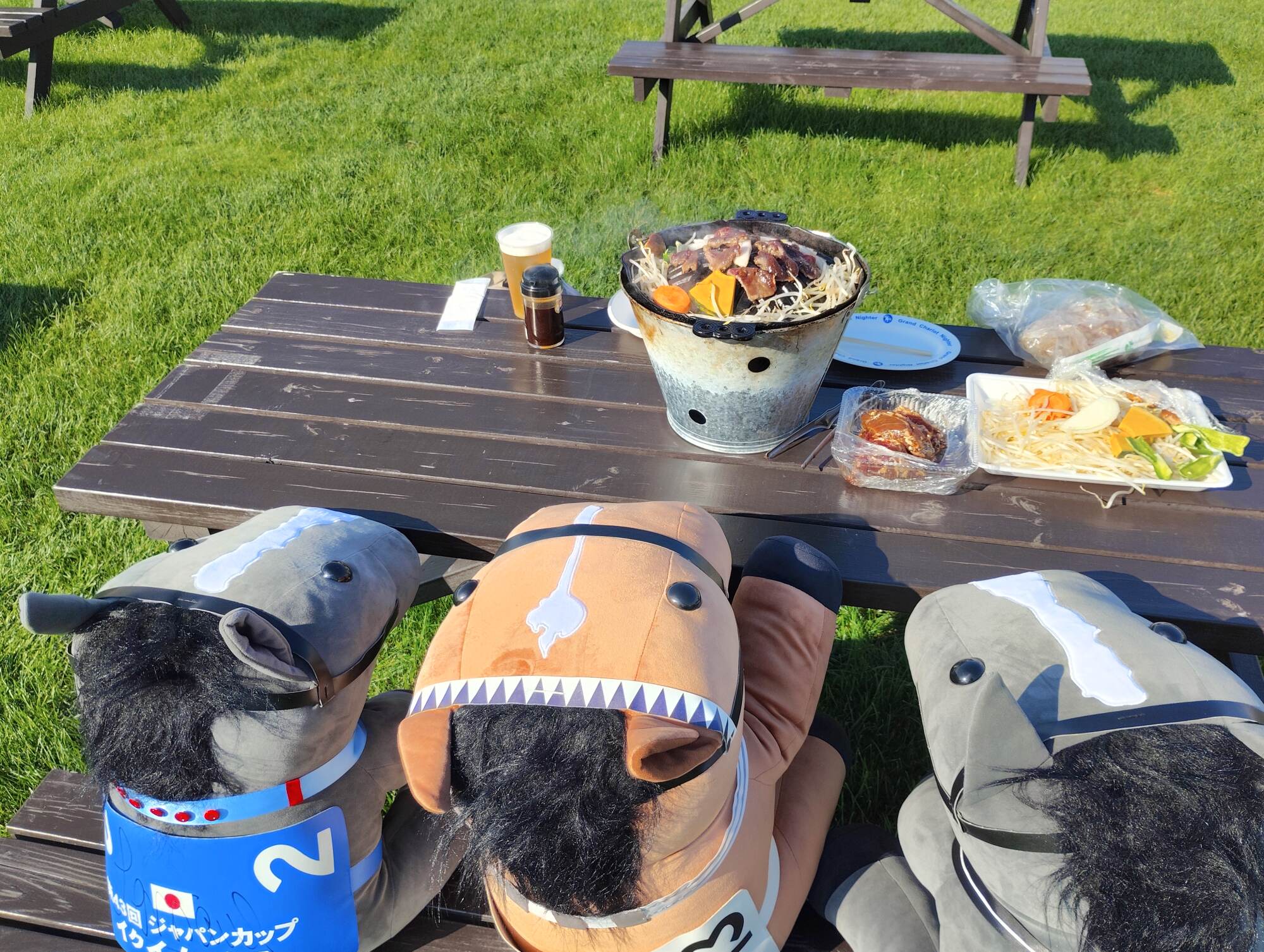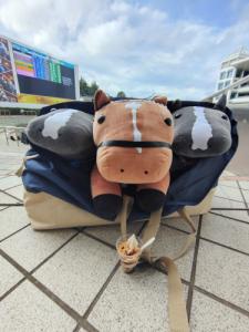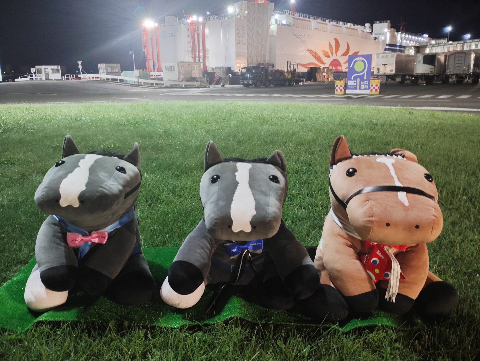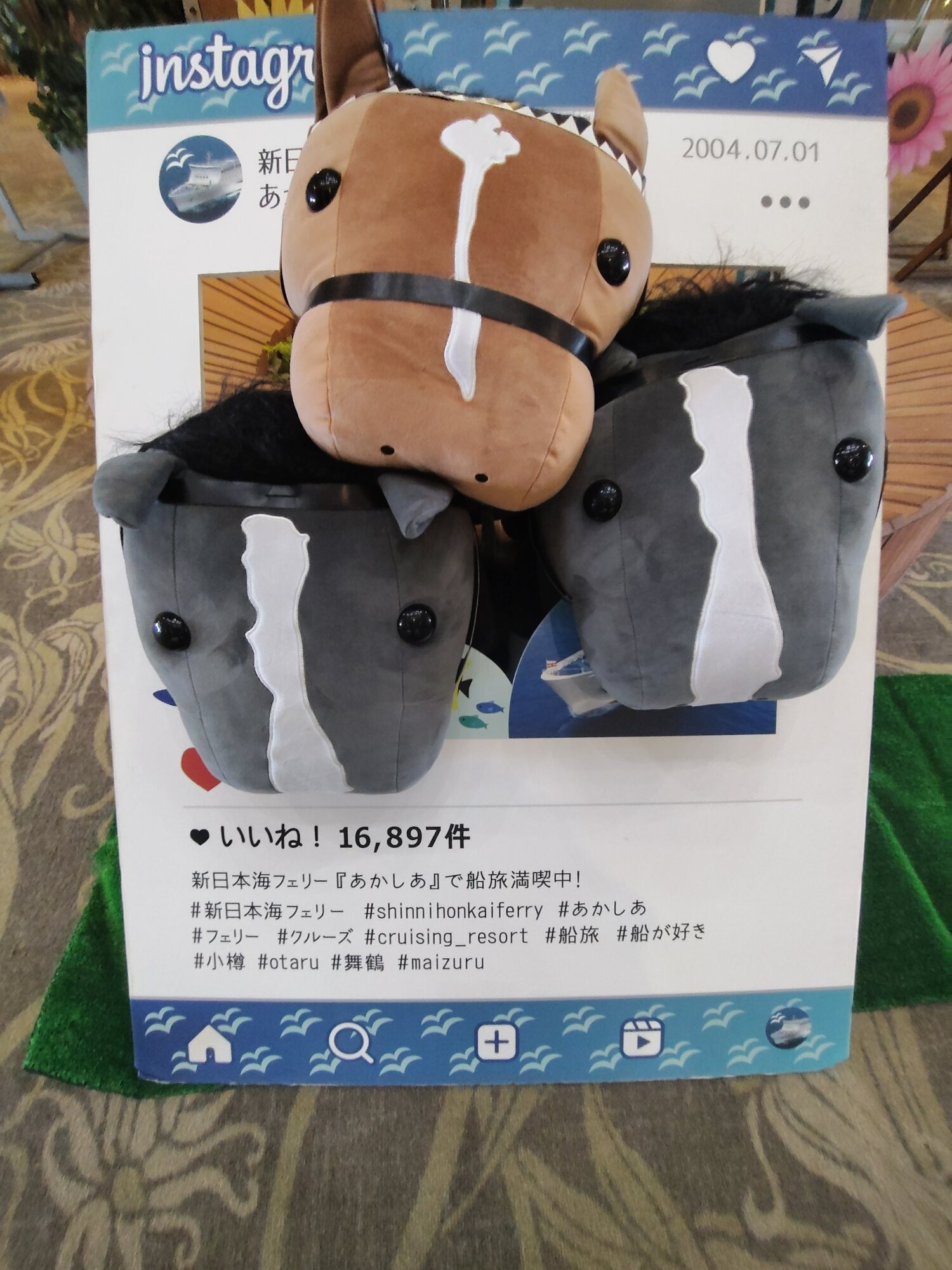 ノーザンホースパークならぬいぐるみ連れは見慣れてそうだけど、さすがにでかもっち3頭出しははじめてだろうな…
