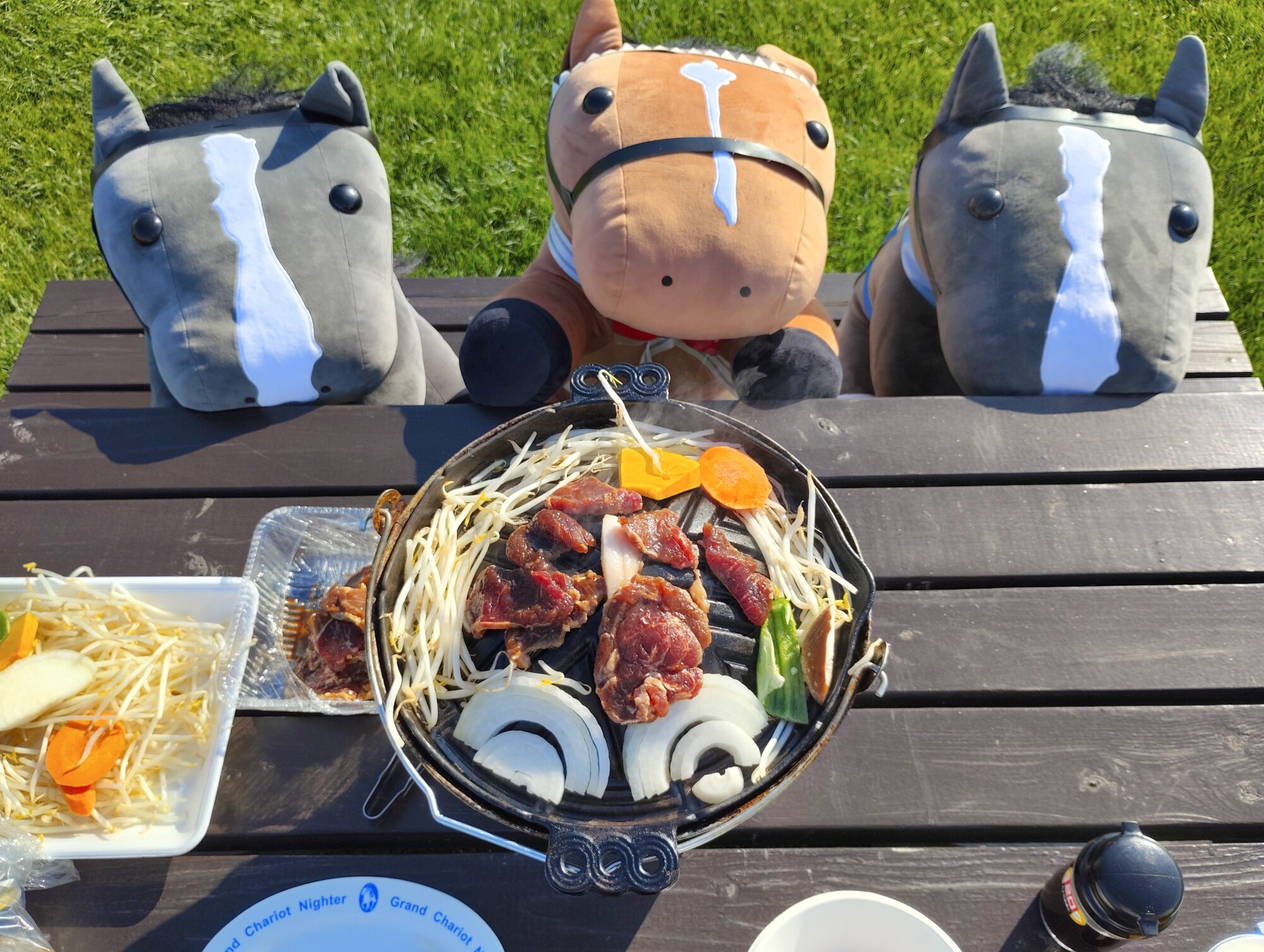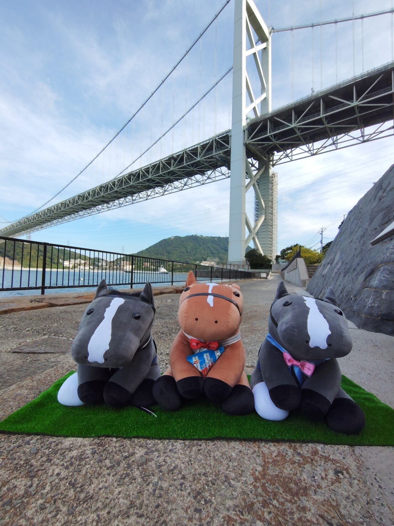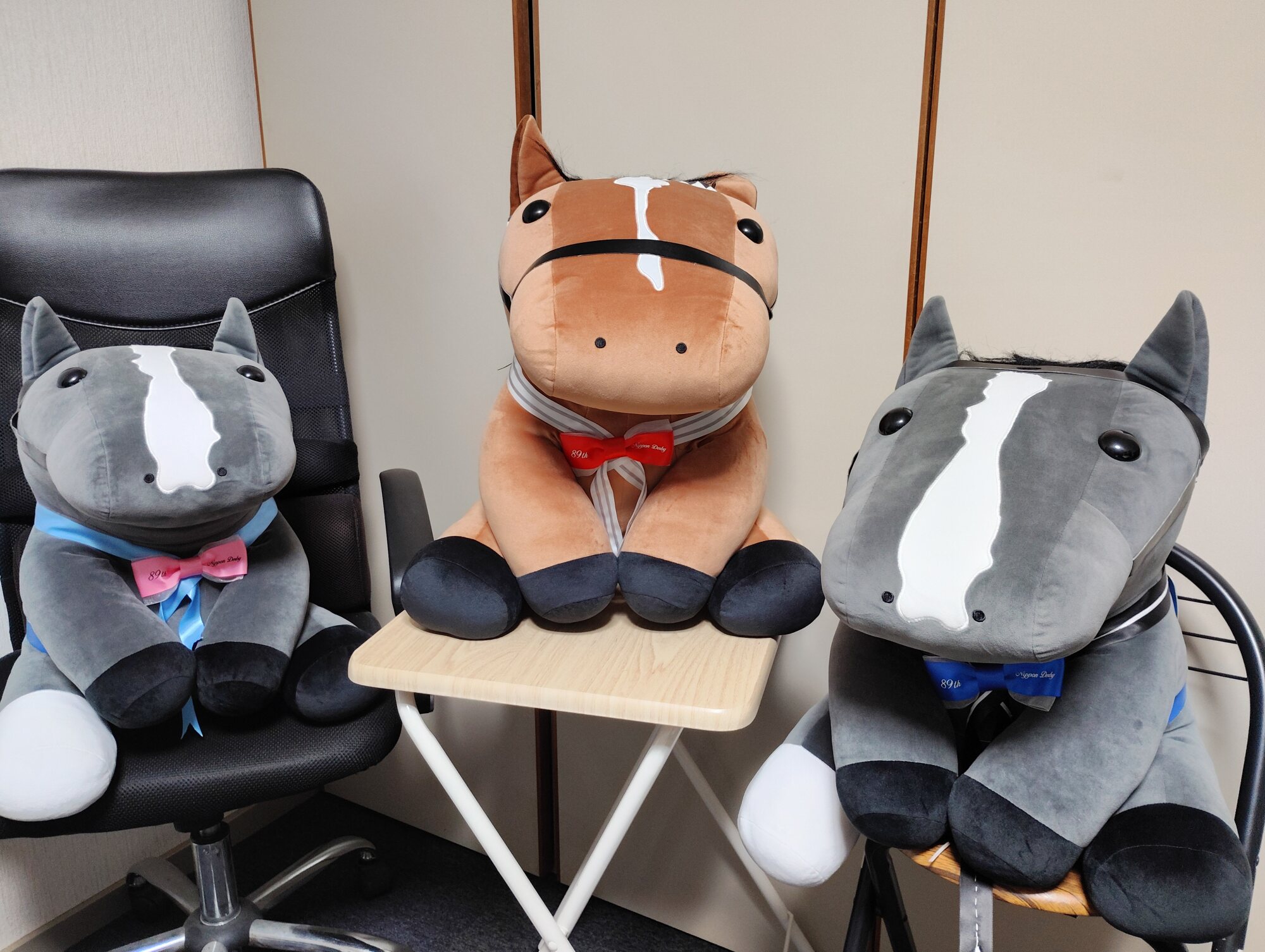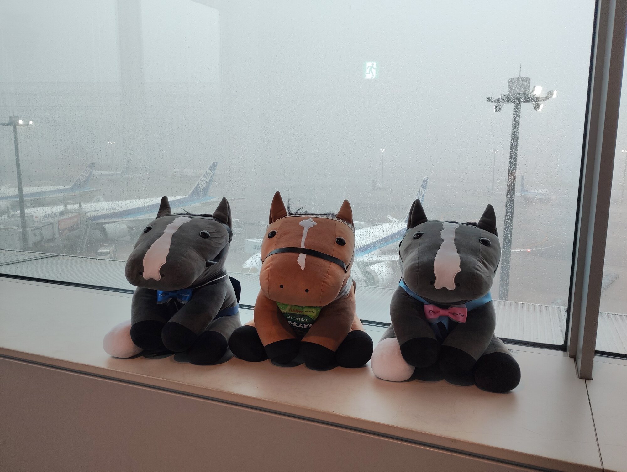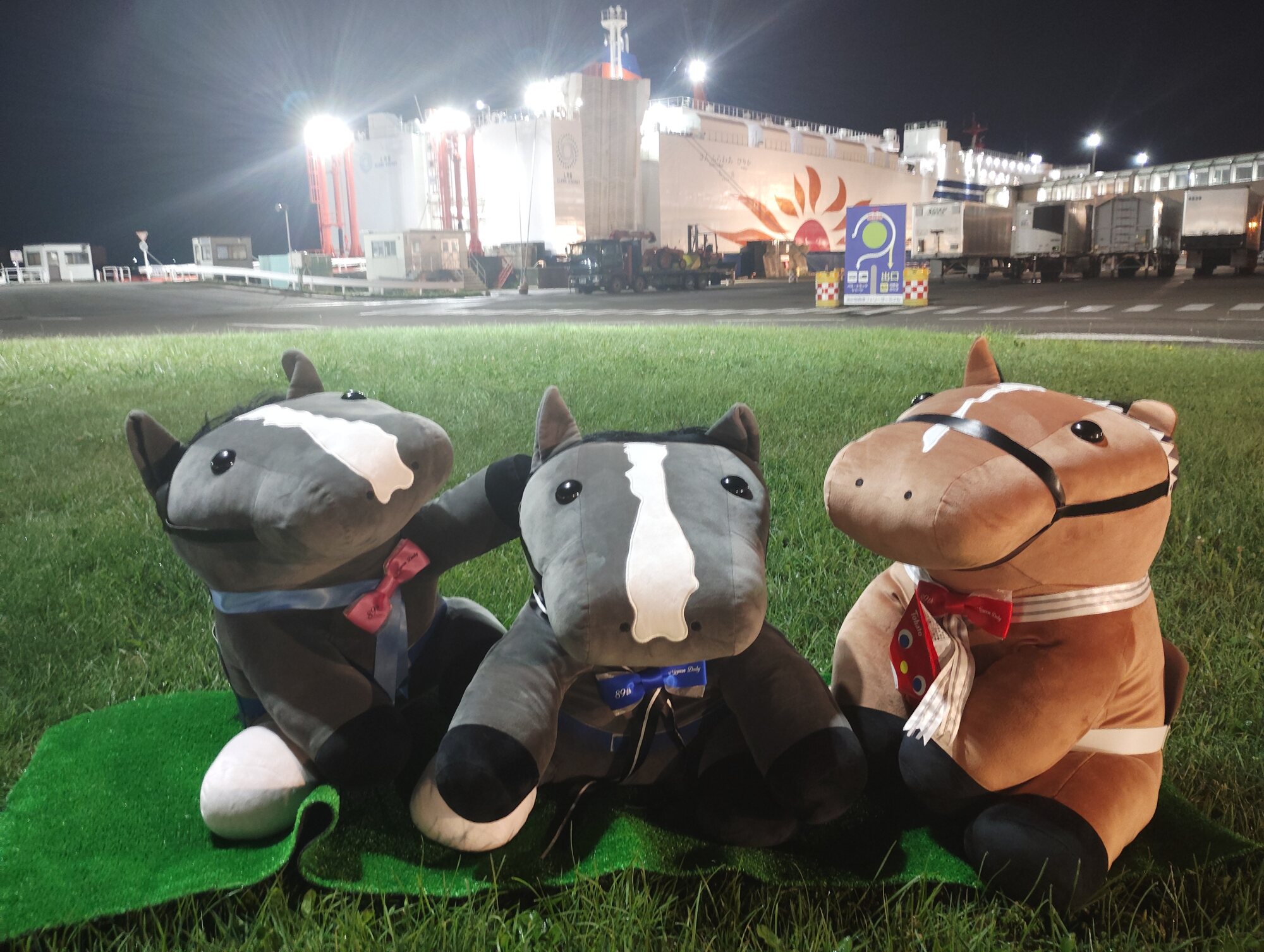 ノーザンホースパークならぬいぐるみ連れは見慣れてそうだけど、さすがにでかもっち3頭出しははじめてだろうな…