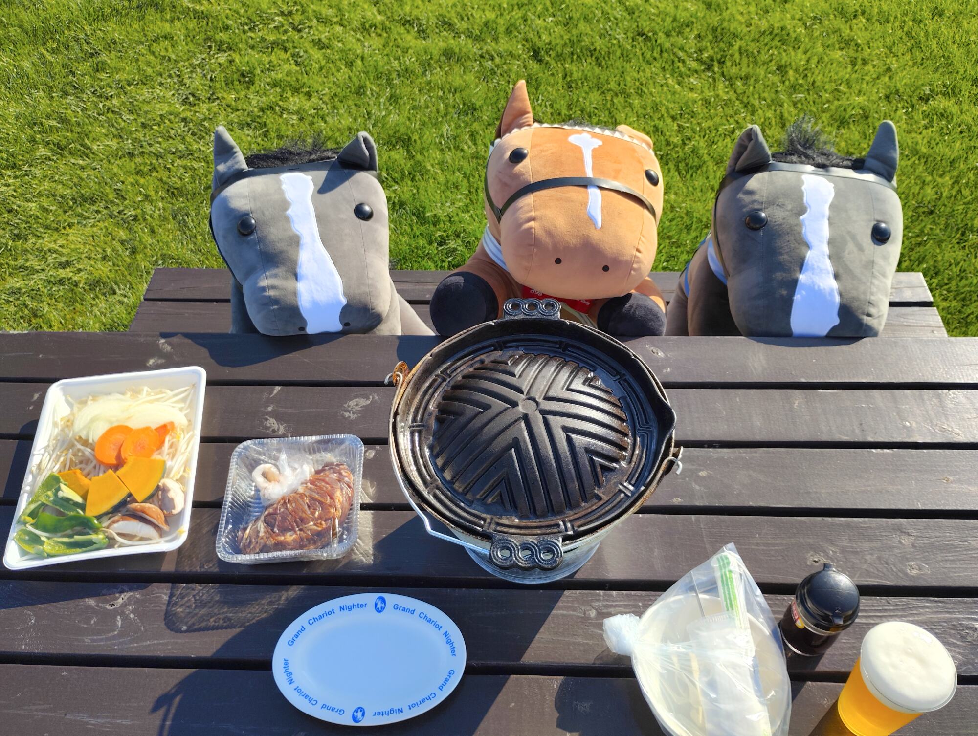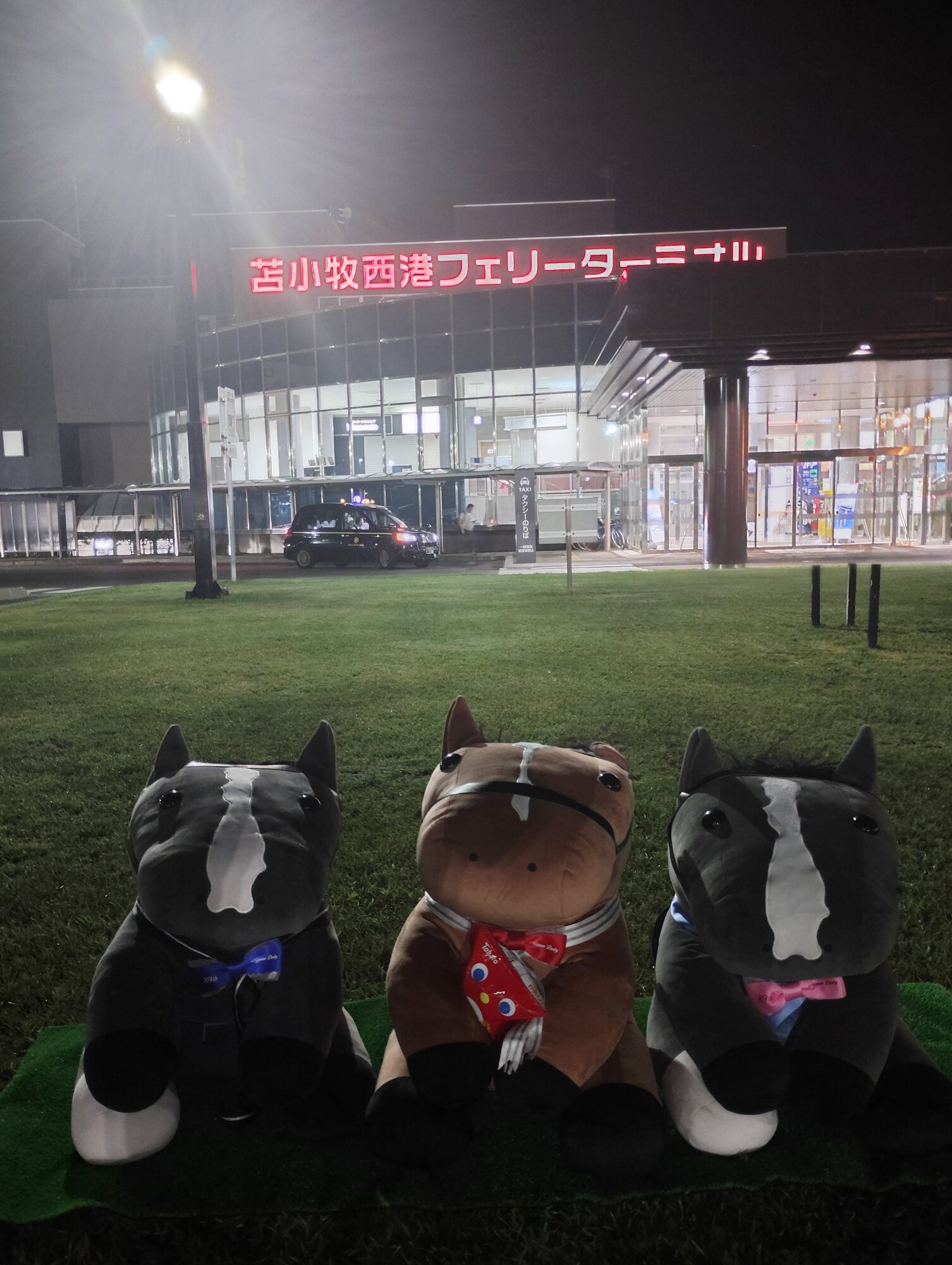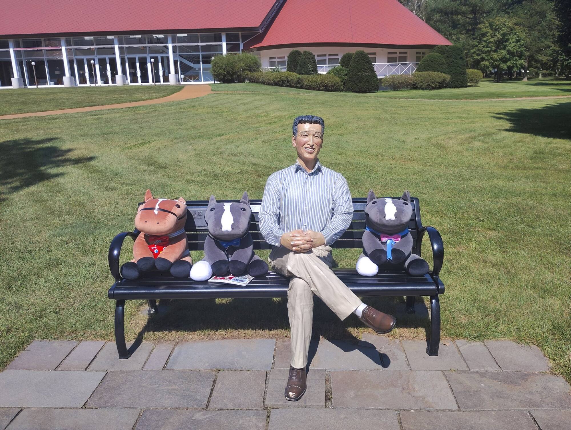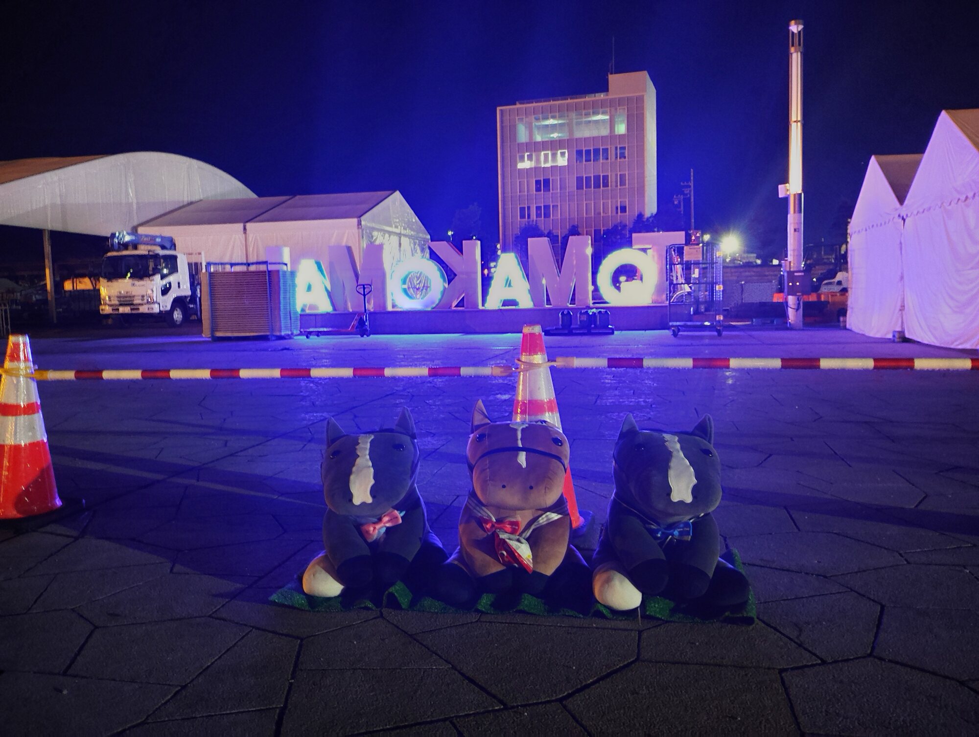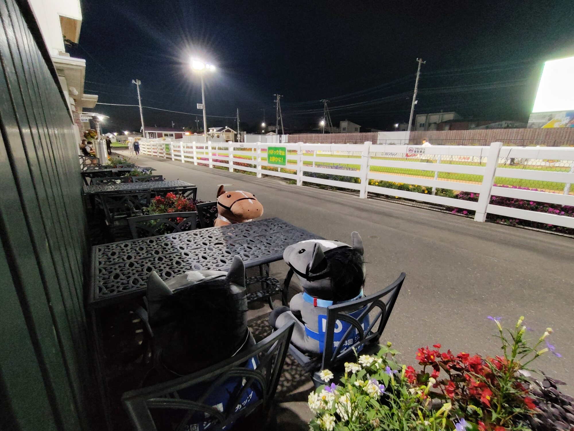 ノーザンホースパークならぬいぐるみ連れは見慣れてそうだけど、さすがにでかもっち3頭出しははじめてだろうな…