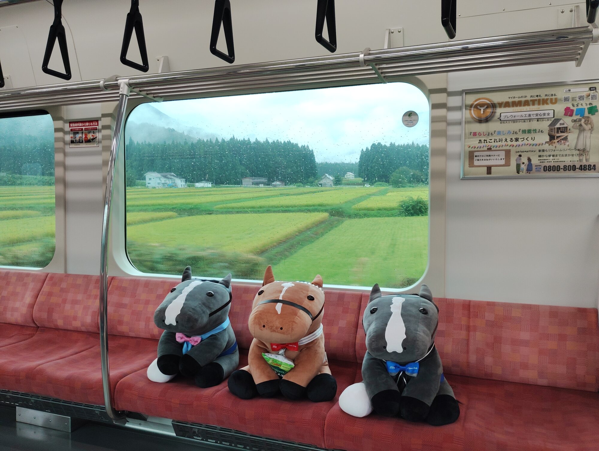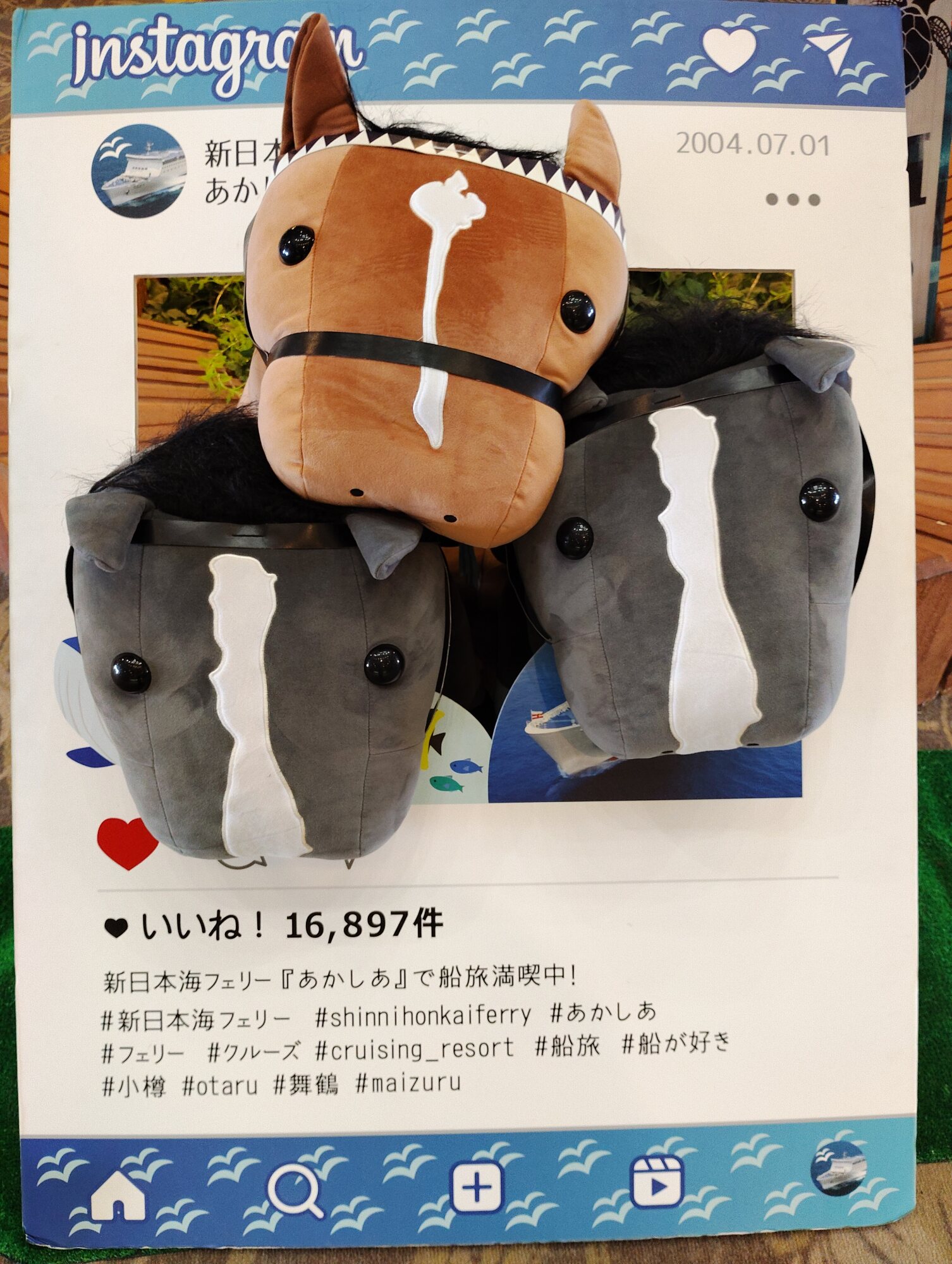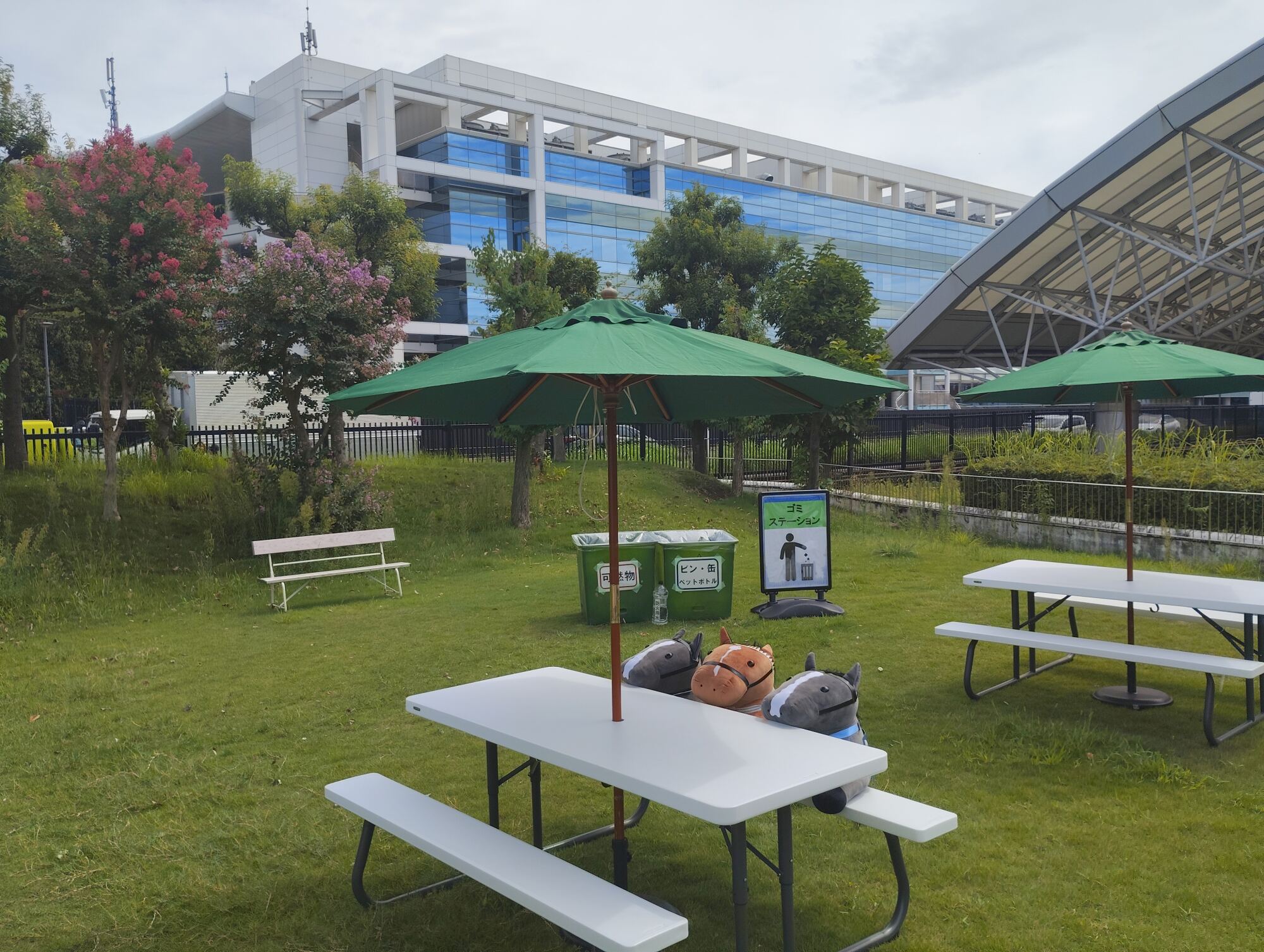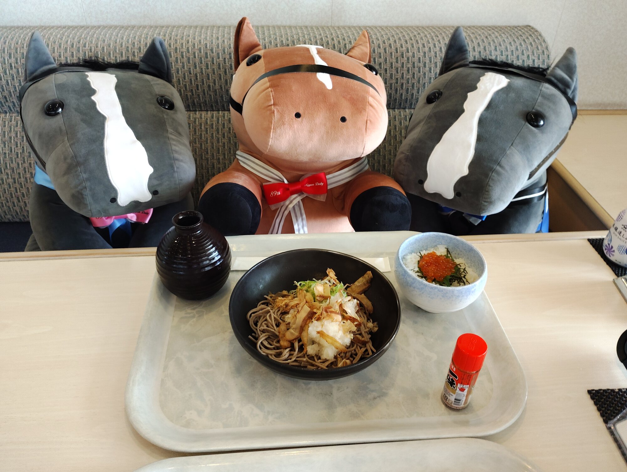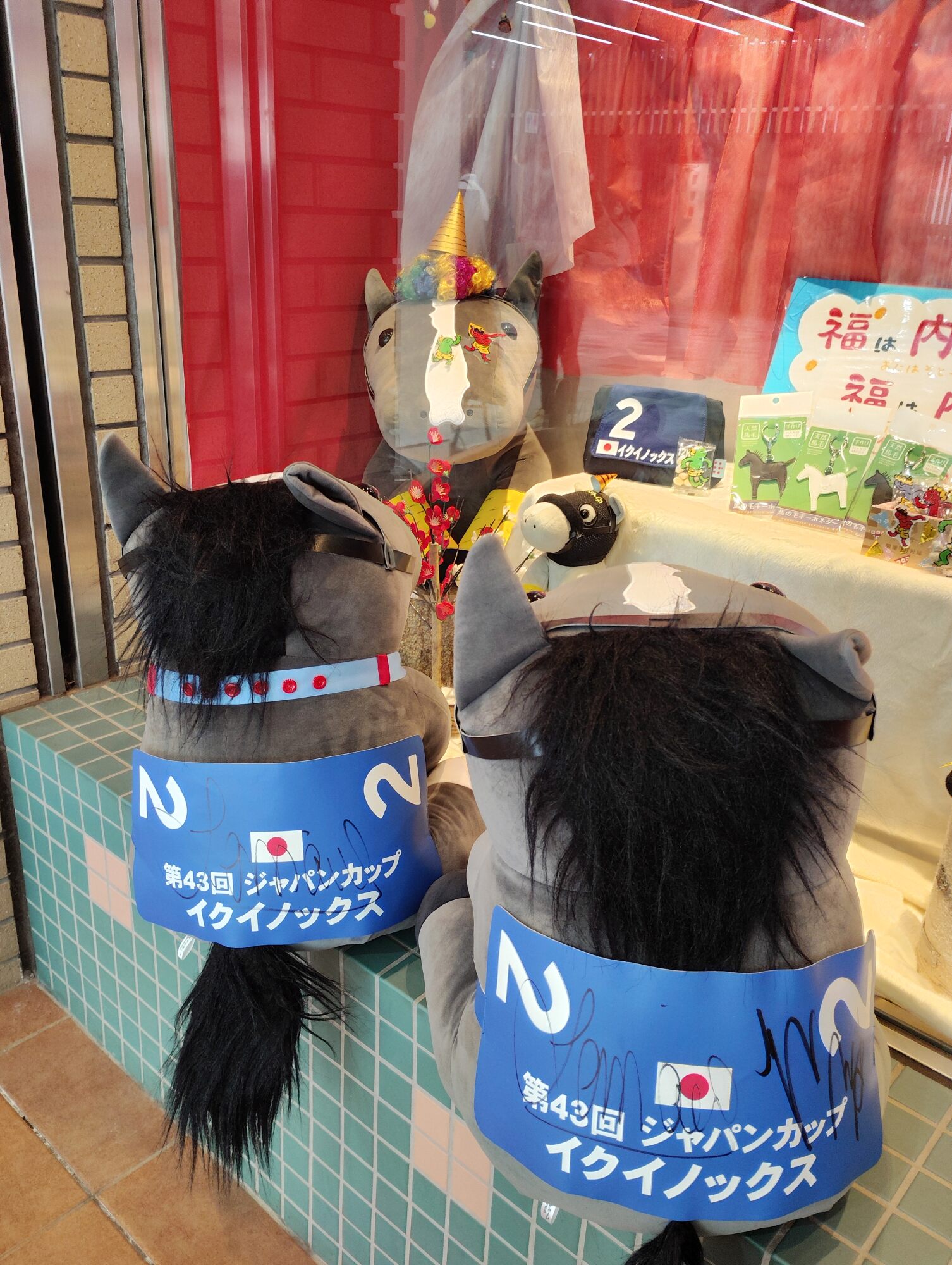 ノーザンホースパークならぬいぐるみ連れは見慣れてそうだけど、さすがにでかもっち3頭出しははじめてだろうな…