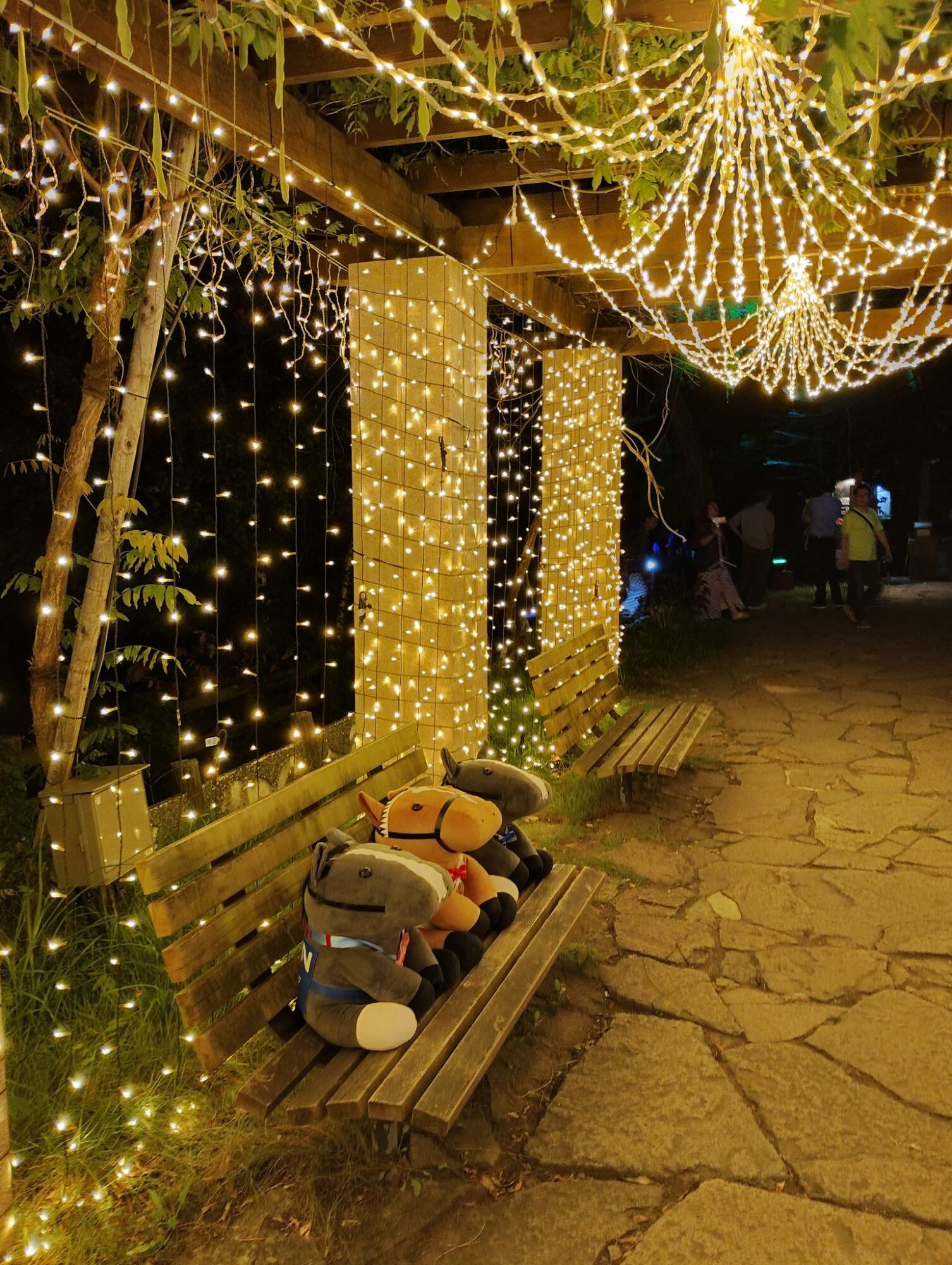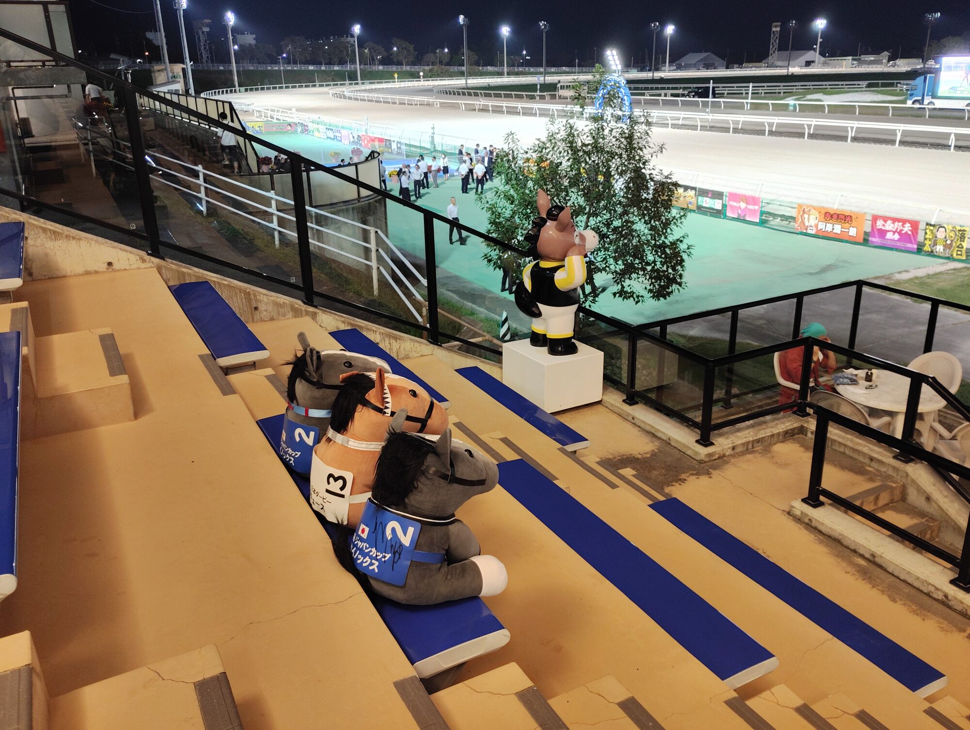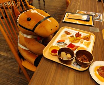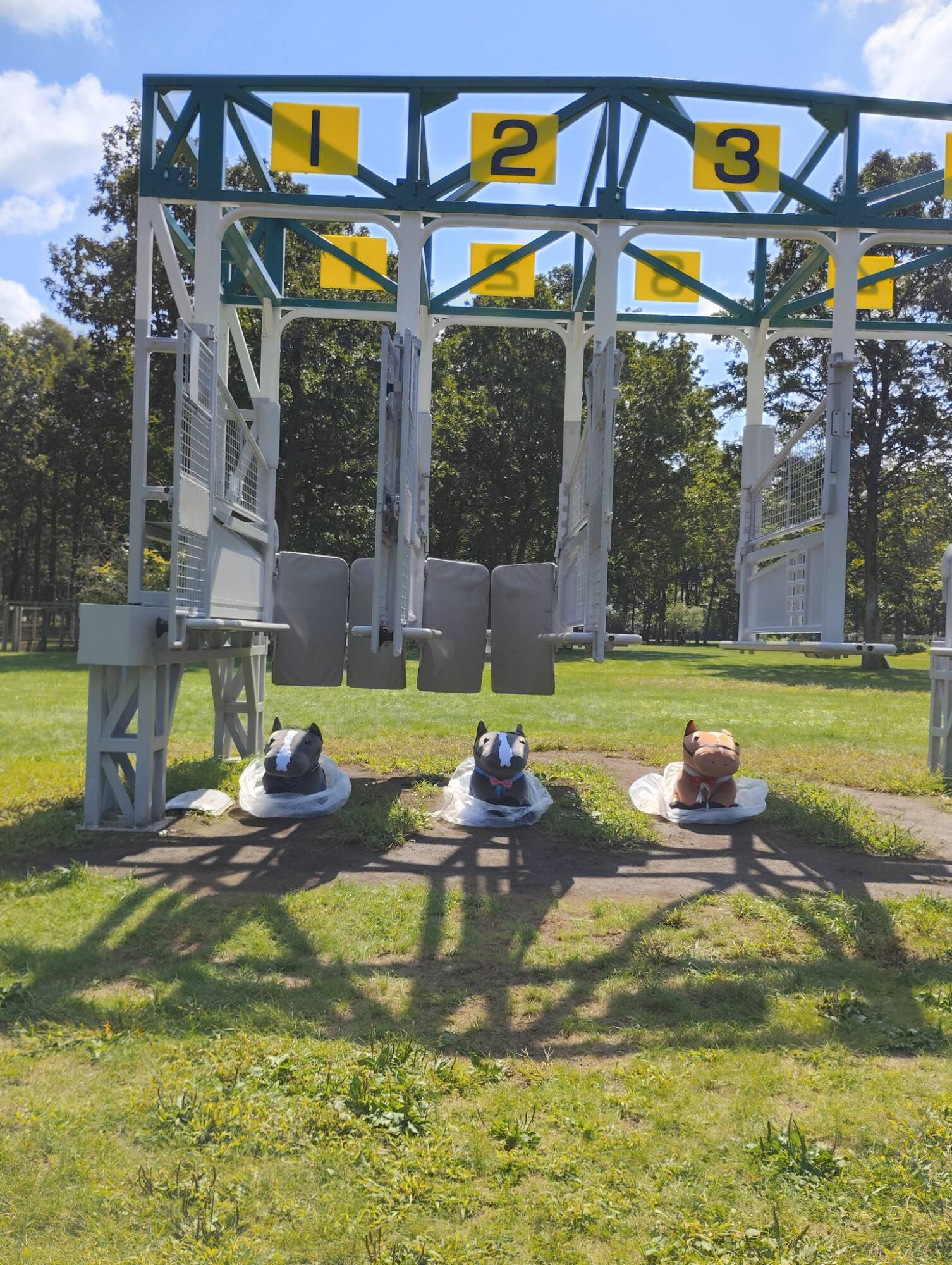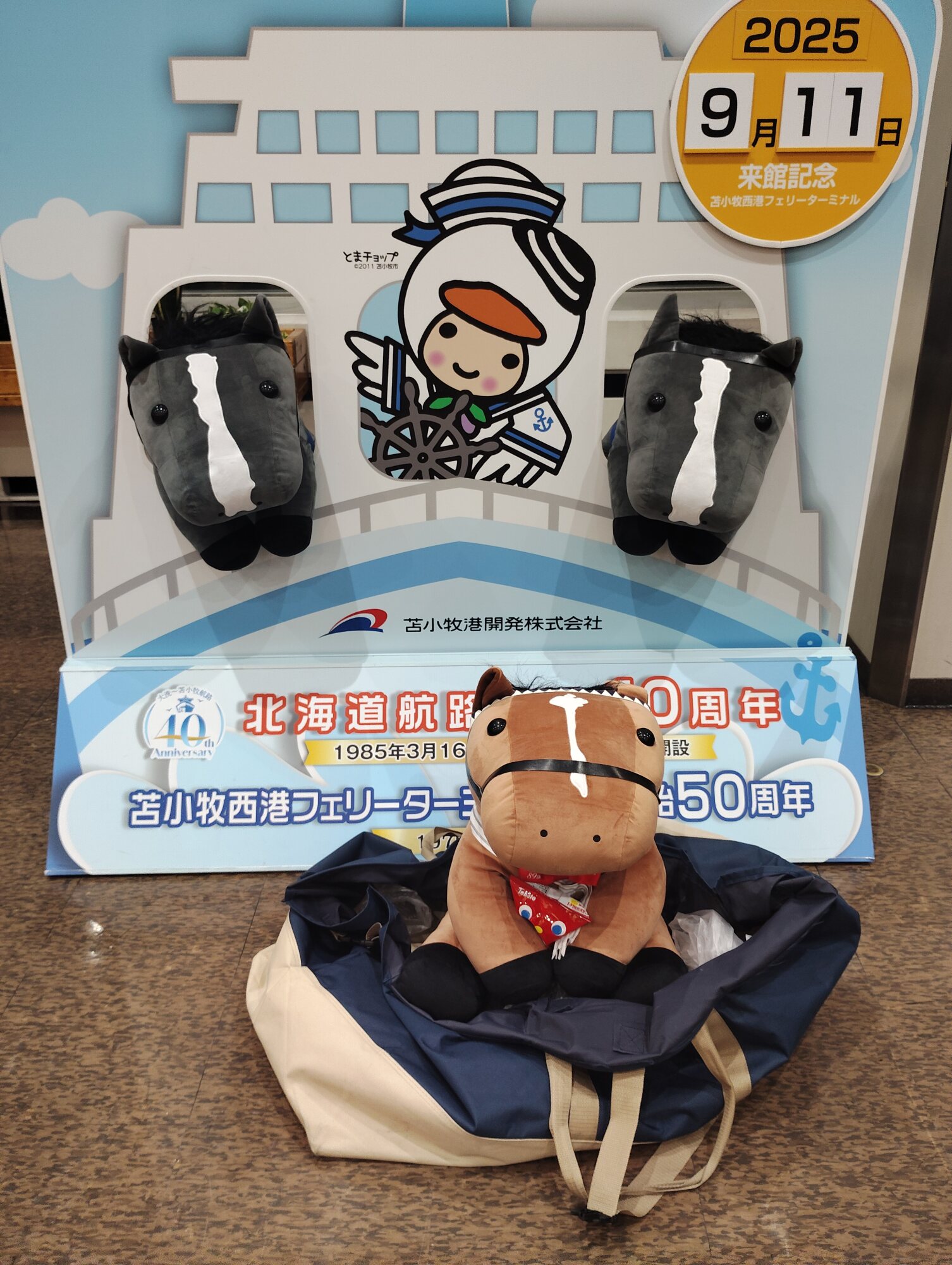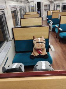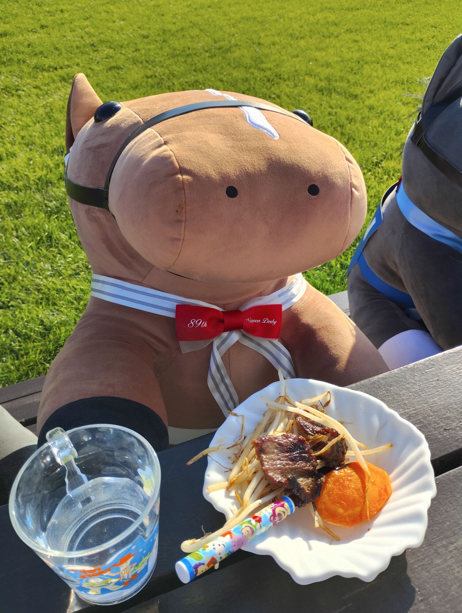 ノーザンホースパークならぬいぐるみ連れは見慣れてそうだけど、さすがにでかもっち3頭出しははじめてだろうな…