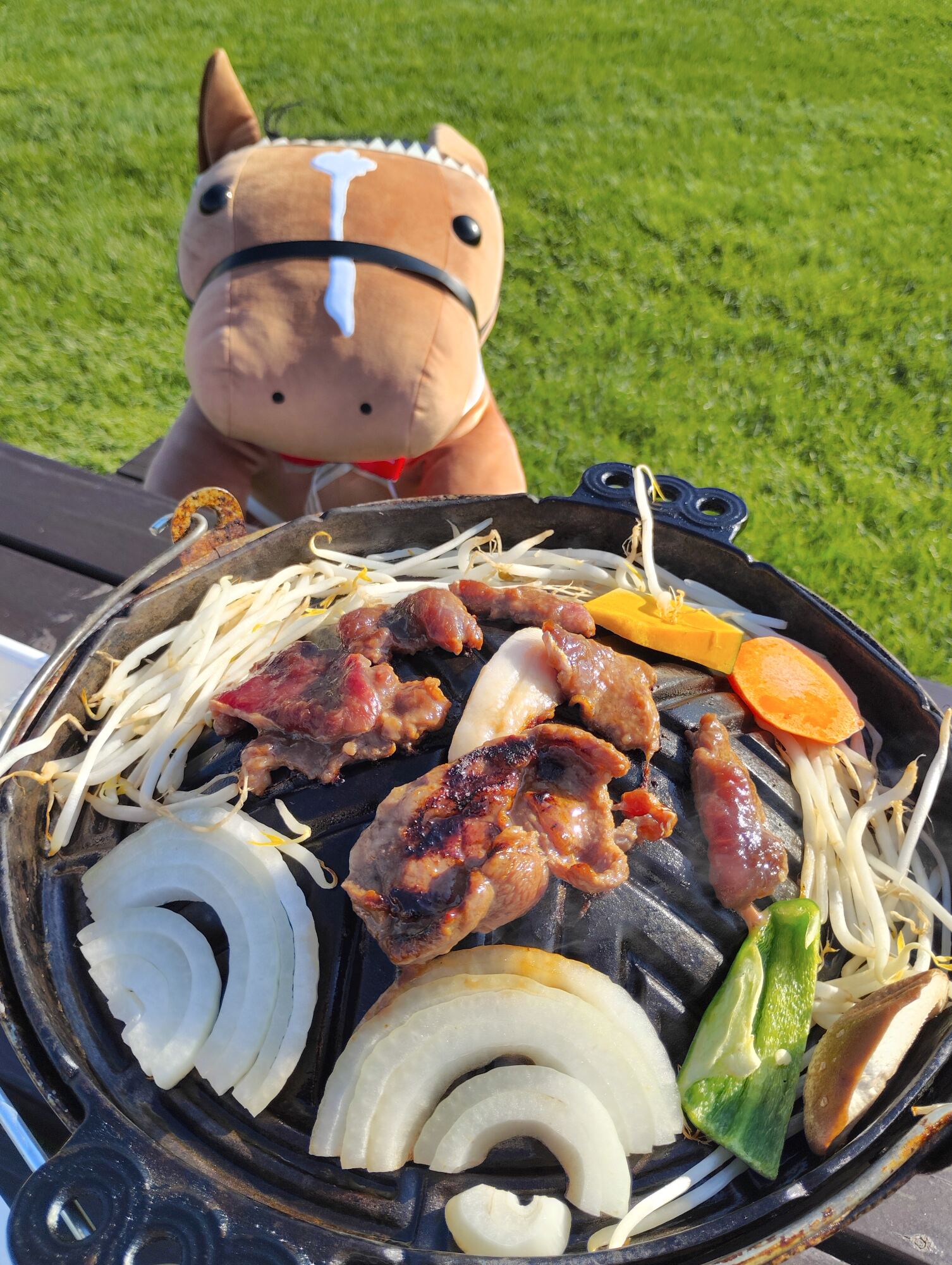 ジンギスカン2枚目のおどうくんの視線が鍋じゃなく焼いている人を見ている気がする…