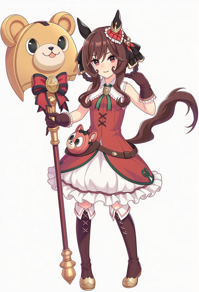 コパノリッキーに異世界レッドのイドラの服装をお願いします。