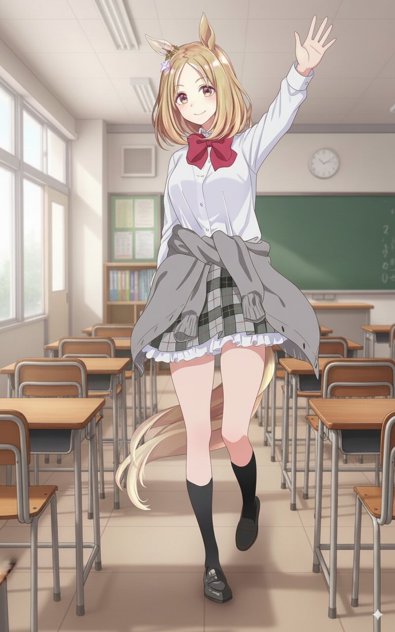 サイレンススズカに僕勉の唯我水希の制服姿をお願いします。