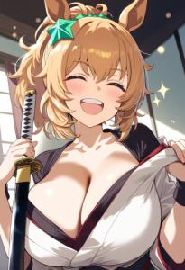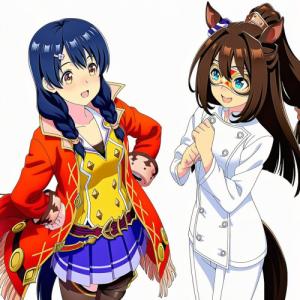 エルコンドルパサーに食戟のソーマの田所恵の制服姿か調理服姿をお願いです。