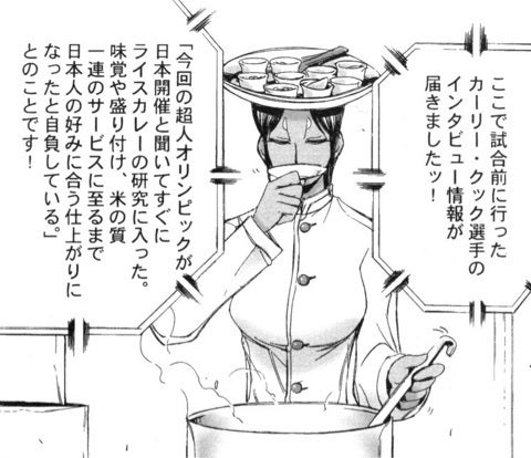 カーリー・クック(女版カレクック)がインド超人なのに日本式カレーを頭に載せているのは日本で行われる超人オリンピックに合わせて日本式カレーの研究をしたからという設定