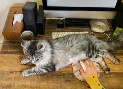 猫様のおかげで仕事がはかどりますナデナデ