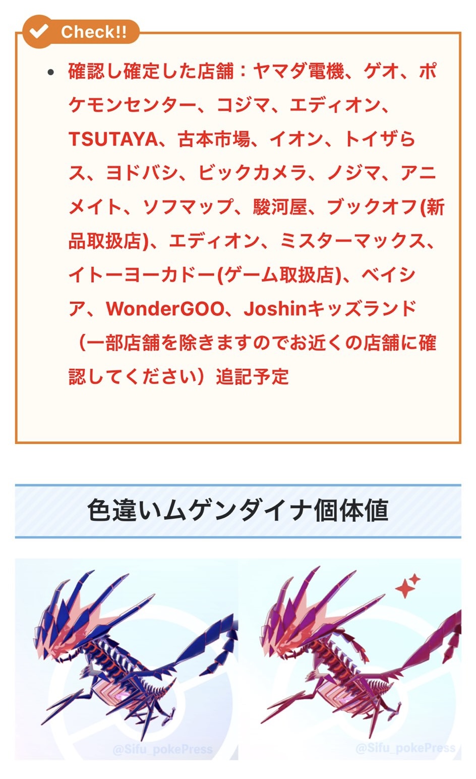 場所による昔USMの似たような配布(グラードンもしくはカカイオーガ)の時は一人どちらかのシリアルコードしか貰えないって知らなくて両方出したら、店員が余ってるから両方くれたことあったよ