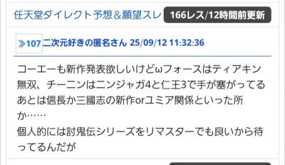 上で挙がってるニンジャガ4もワイルドハーツやSteam版ローニンみたいにコーエーかプラチナゲームズが販売元になってSwitch2に持ってくる可能性は十分にあると思う - 101二次元好きの匿名さん25/09/14(日) 18:19:01