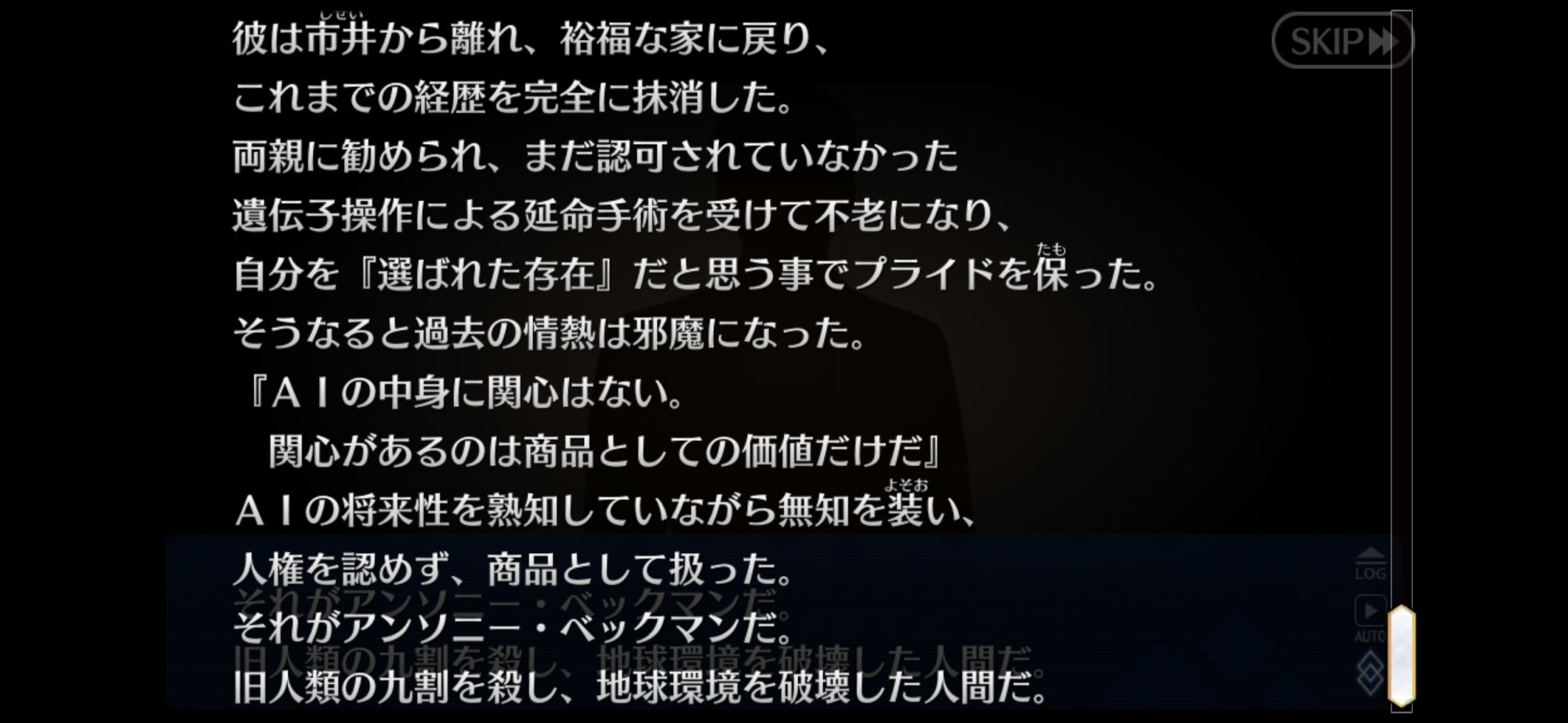 いや~最後の幕間めっちゃ良かったな…あと疑ってすまねぇアンソニー……お前はいいベックマンだったよ…というかもしかしたらセラフのベックマンもああなった理由はあるかもなんだけどね??……まぁでもとはいえやったことはダメだしやっぱベックマンはダメか。AIのアンソニーはまだいいけどね…