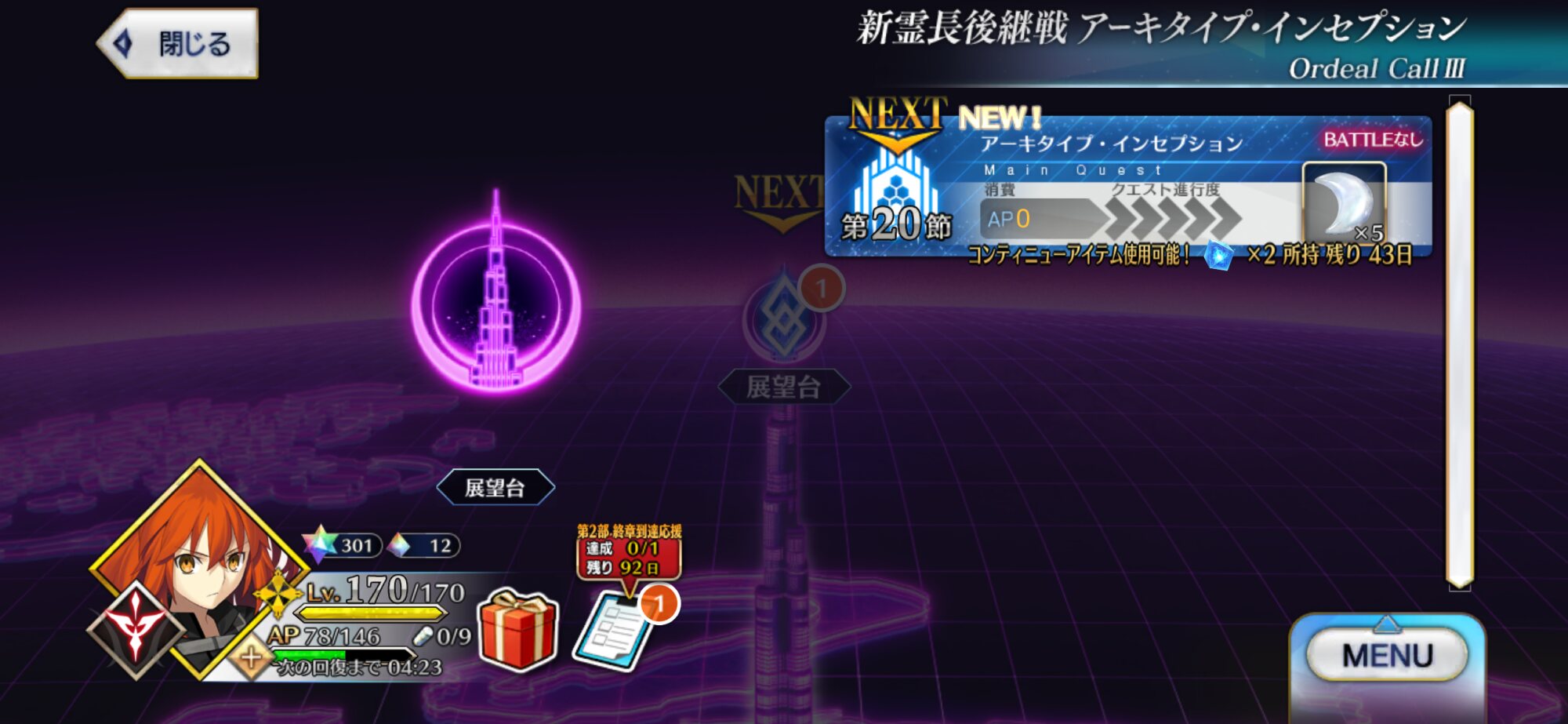 現在は奏章Ⅲ、アーキタイプ・インセプション15節!!ちょうどアーキタイプ:アース嬢との決戦のところですね!