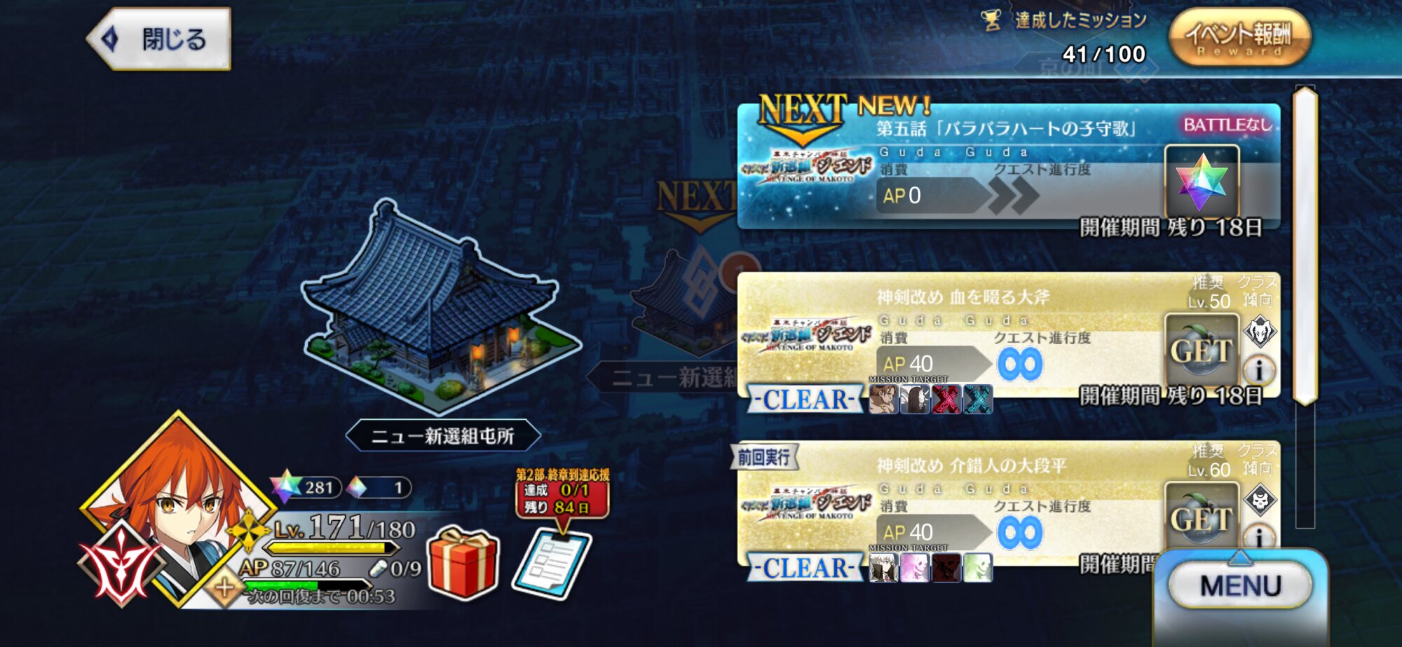 さて明日も日中に奏章IV、夜の更新からぐだぐだイベントの予定です!なるべく奏章IVも進めていきたいですね…