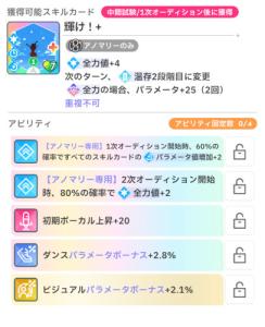 一応センスカード取りすぎないと言ったけどスポットライトだけは1次までに取れるとかなり安定するからスポットライトだけは最低1枚は欲しい。ドロー効果で保留送りに出来なかった時の保険と好調の1.5倍もシンプルに強い。あと体力管理にも一役買ってくれるしね。絶好調は好調あまり盛れない1次では使いづらいから優先度は低め。