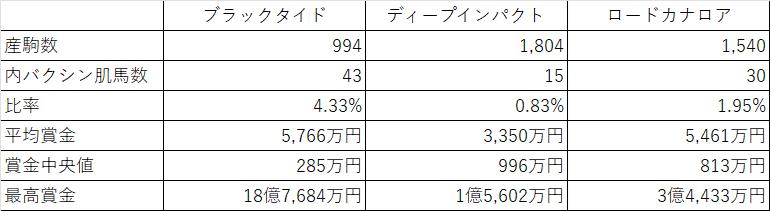 ブラックタイド産駒のデータ